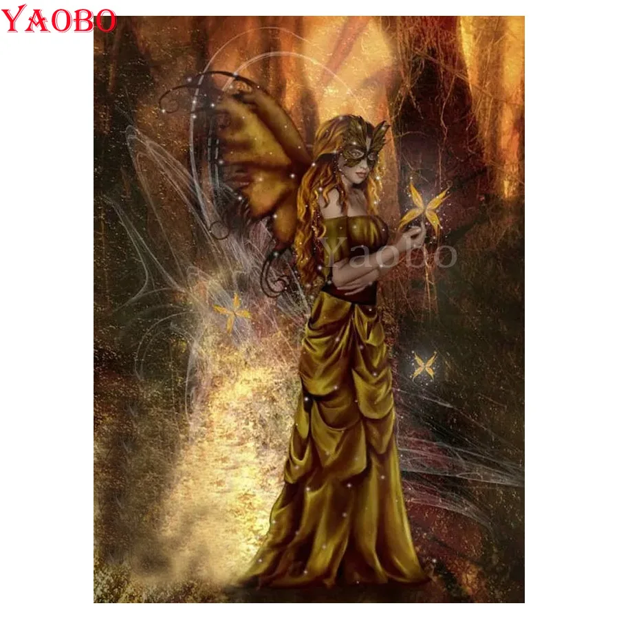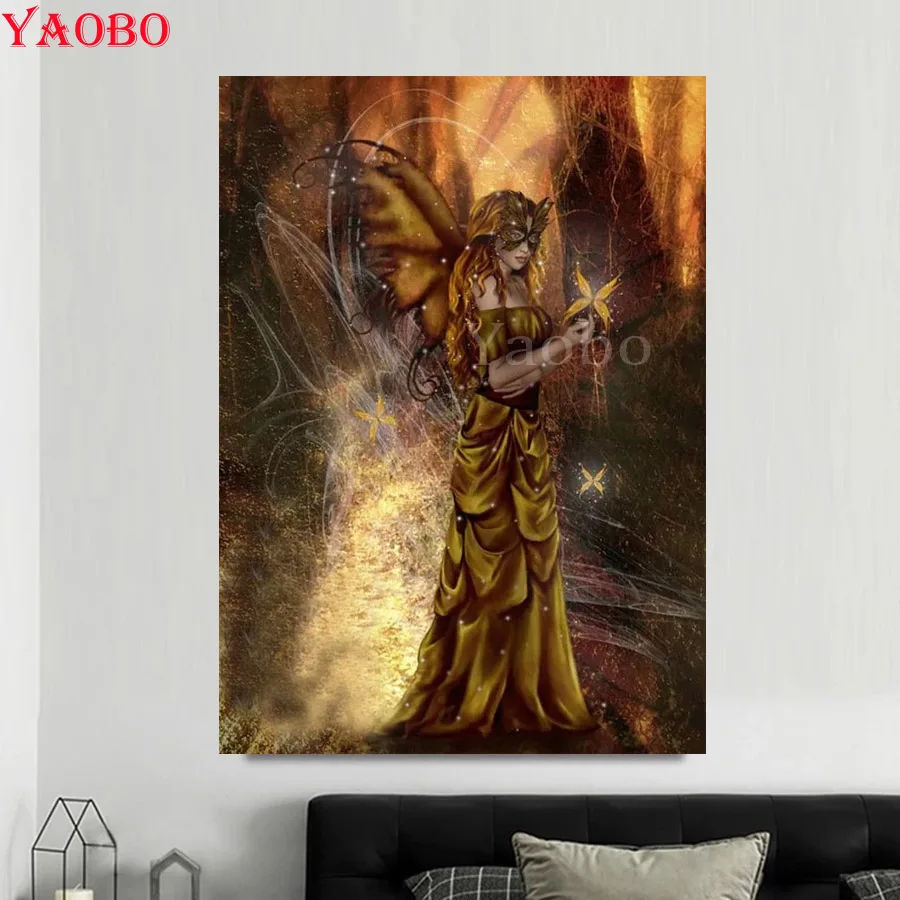 Алмазная картина 5D, набор для рисования с бабочкой, феей, картина с бриллиантами для девочек, искусство, вышивка крестиком, мозаика для рукоделия