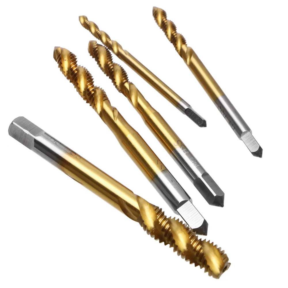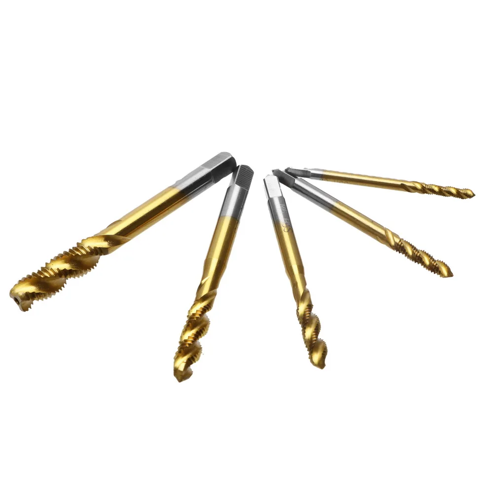 5 шт.лот резьбовые метчики сверло M3 M4 M5 M6 M8 винтовой кран с титановым покрытием спиральные заостренные метчики