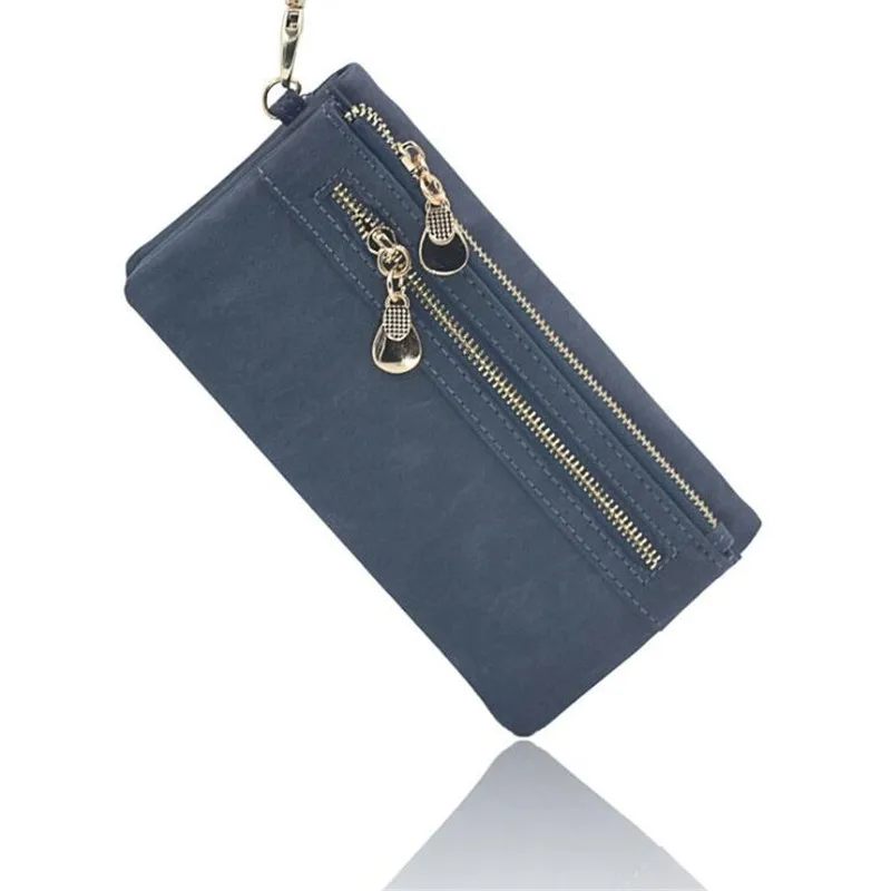 Кошельки для женщин, Матовый кожаный кошелек с двойной молнией, дневной клатч с ремешком на запястье, Женский кошелек на молнии, брендовый бумажник для женщин