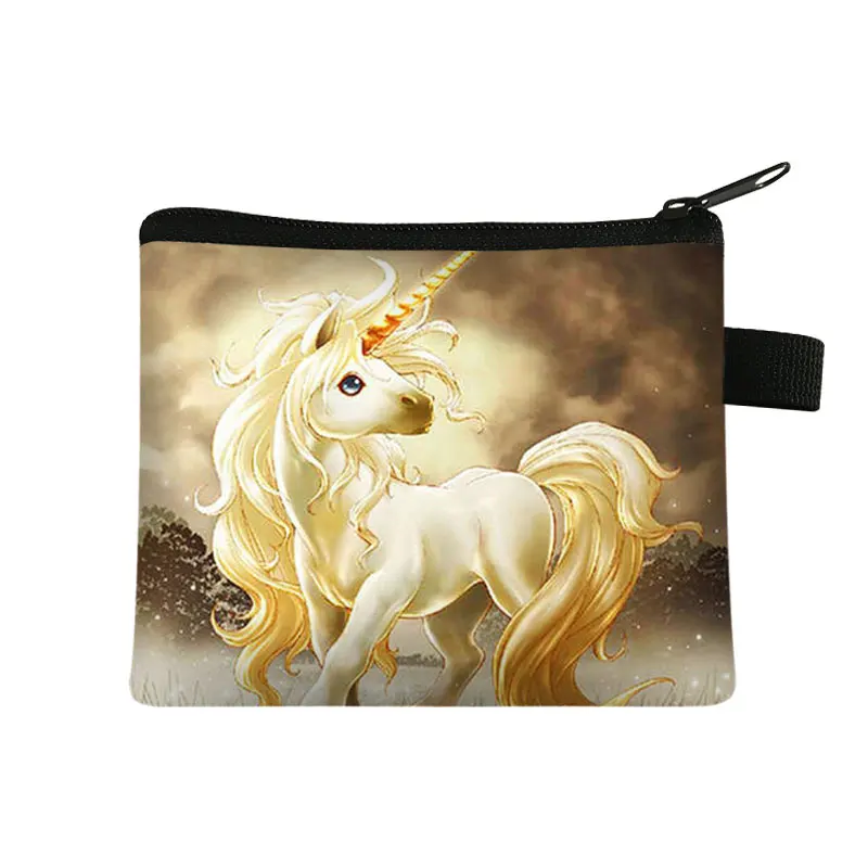 Женские мини-сумки с принтом единорога для девочек, модный кошелек для монет, держатель для карт, кошелек для ключей, сумка для макияжа с героями мультфильмов
