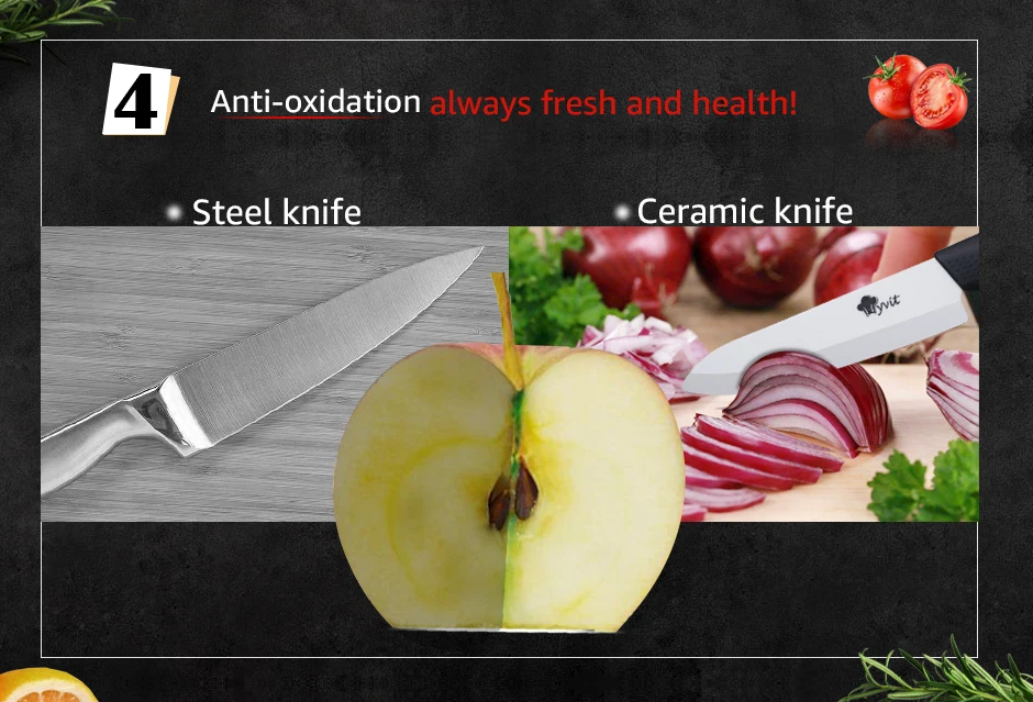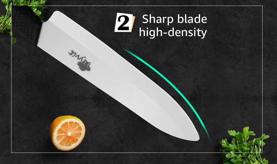 1. Изготовлен из оксида циркония, который является антибактериальным, противообрастающим, нетоксичным и не коррозионным.2. Безопасный, здоровый и экологически чистый. Гарантируем безопасность пищевых продуктов для семьи, обеспечиваем здоровье и модную кухню.3. Лучшие режущие инструменты для овощей, фруктов, рыбы, мяса или любой высокой требовательной пищи.4. Чрезвычайно жесткий, острый, но безопасный. Имеет качество высокой плотности, не легко быть тупым.5. Не реагирует на любую еду, поддерживает оригинальный цвет и вкус пищи, сохраняет свежесть и питание пищи.6. Не раздражает ваши глаза при нарезании возбуждающей пищи, такой как лук.7. Может использоваться для приготовления пищи для ребенка.
