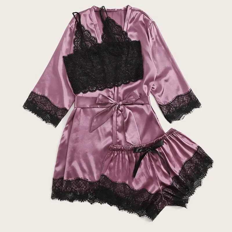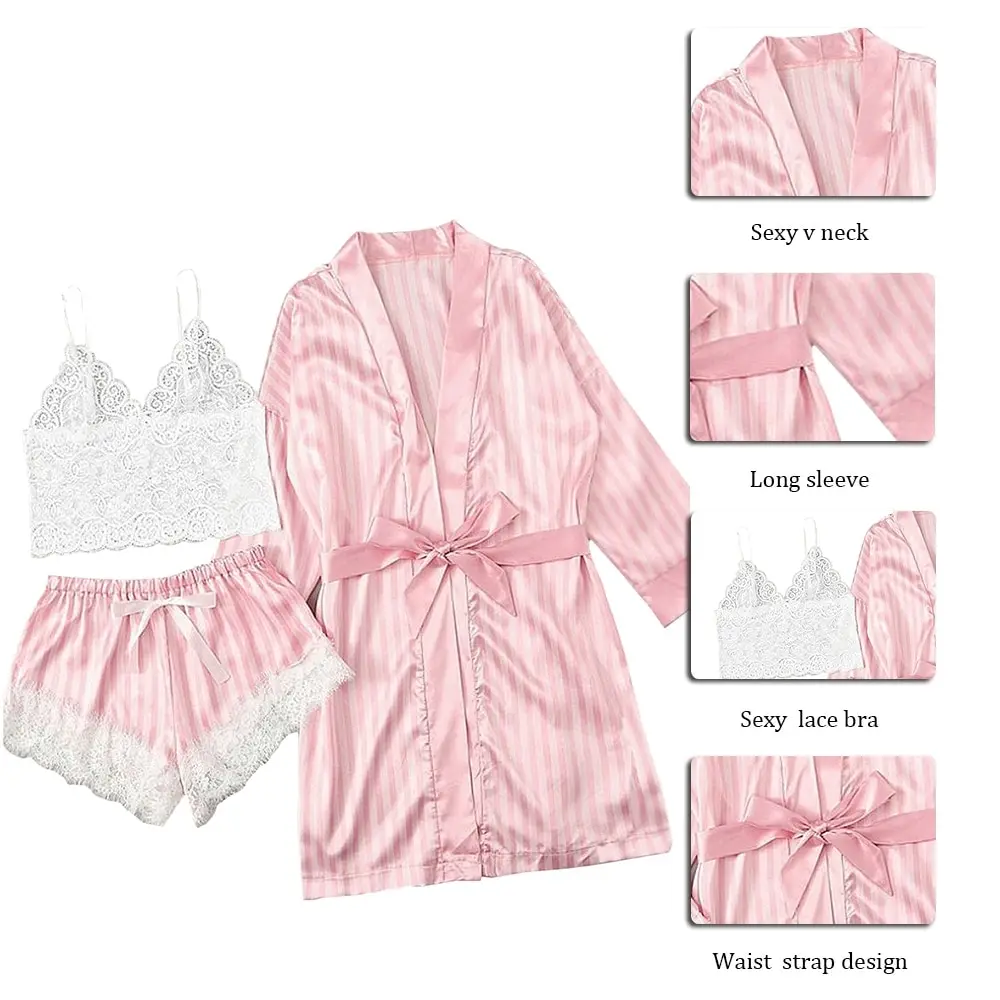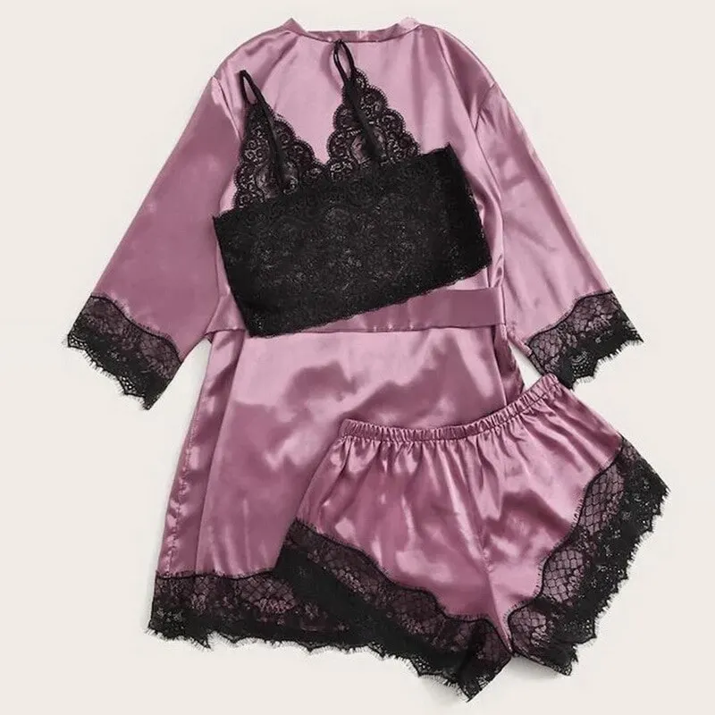 Пижама женская кружевная с длинным рукавом, 2 предмета