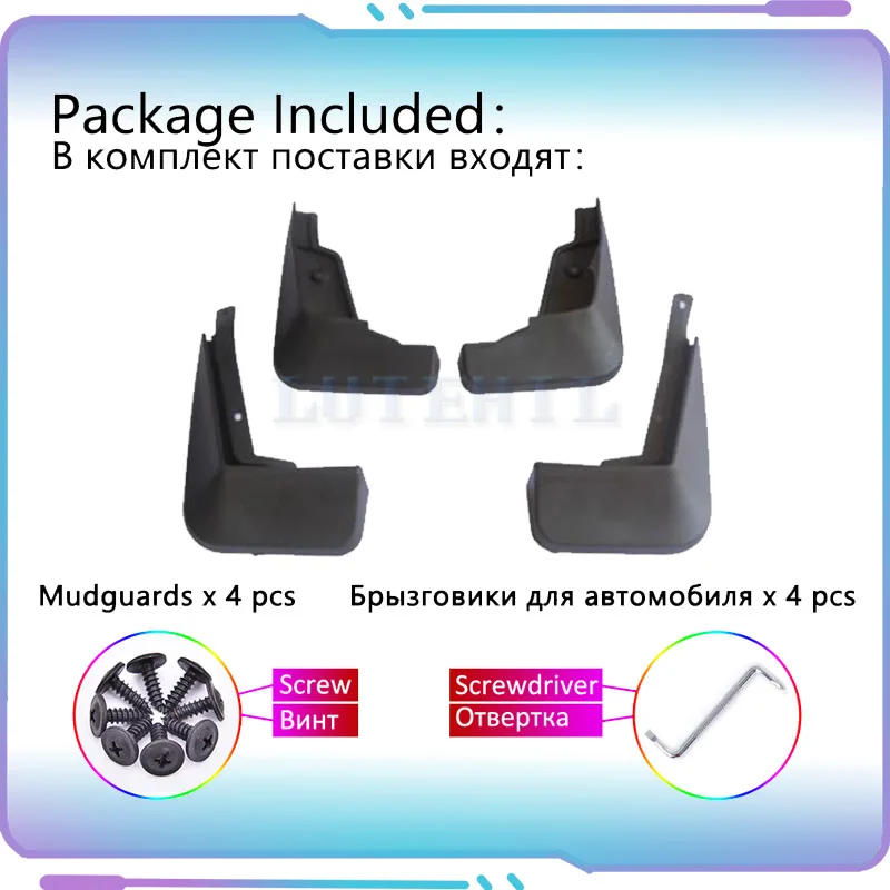 4 x брызговика, 1 x отвертка, сумка для фиксации винтов
