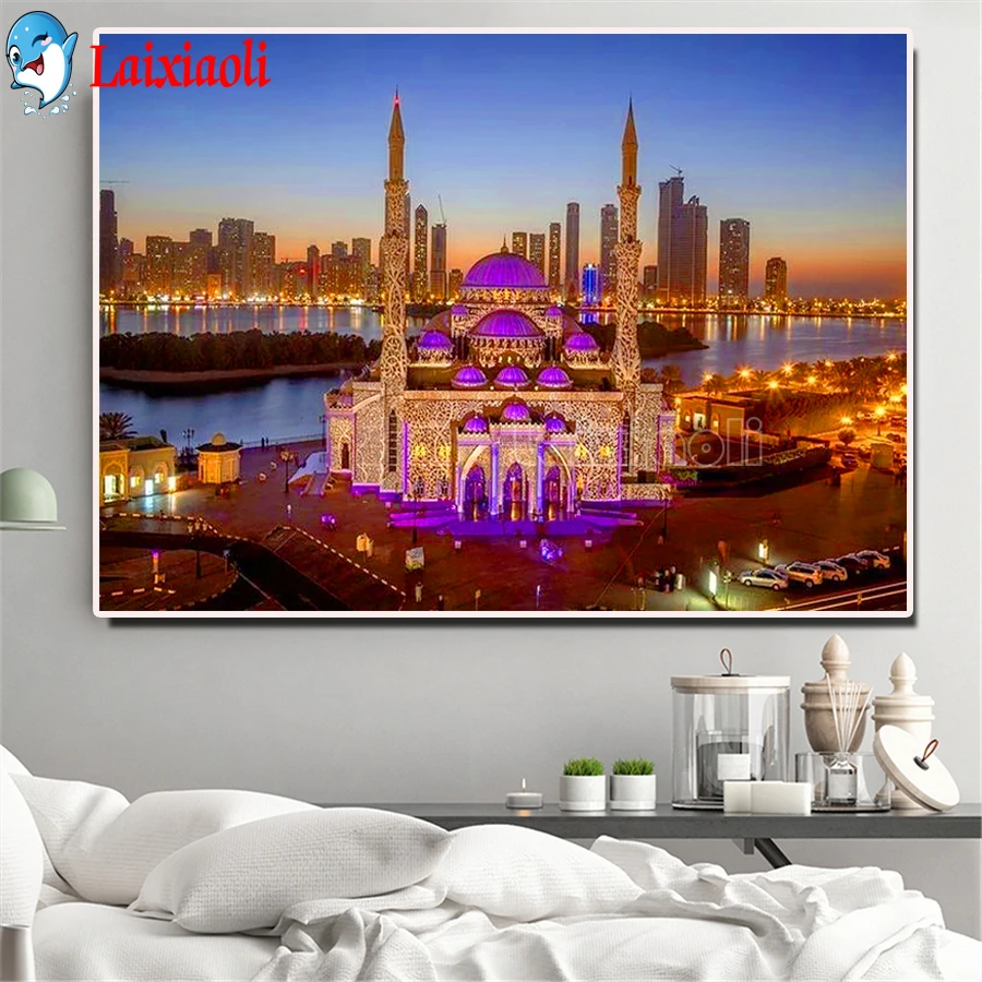 Алмазная вышивка, мусульманская церковь, строение, вышивка крестом, алмазная живопись, наборы, мозаика, головоломка, распродажа, стразы, ручная работа, подарок
