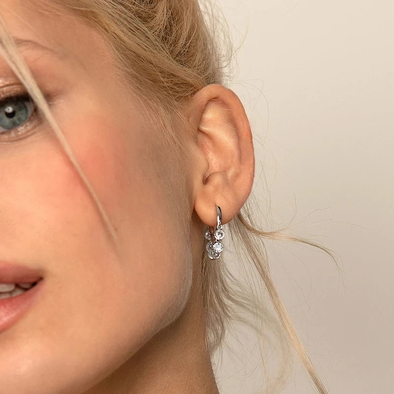 Серьги-кольца женские из серебра 925 пробы с Луной и звездой