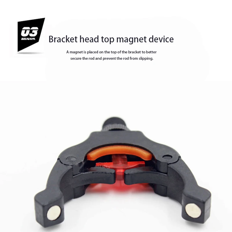 Наконечник зажима спроектирован с помощью двух магнитных камней, которые могут плотно держать зажим закрытым и фиксировать положение удочки.