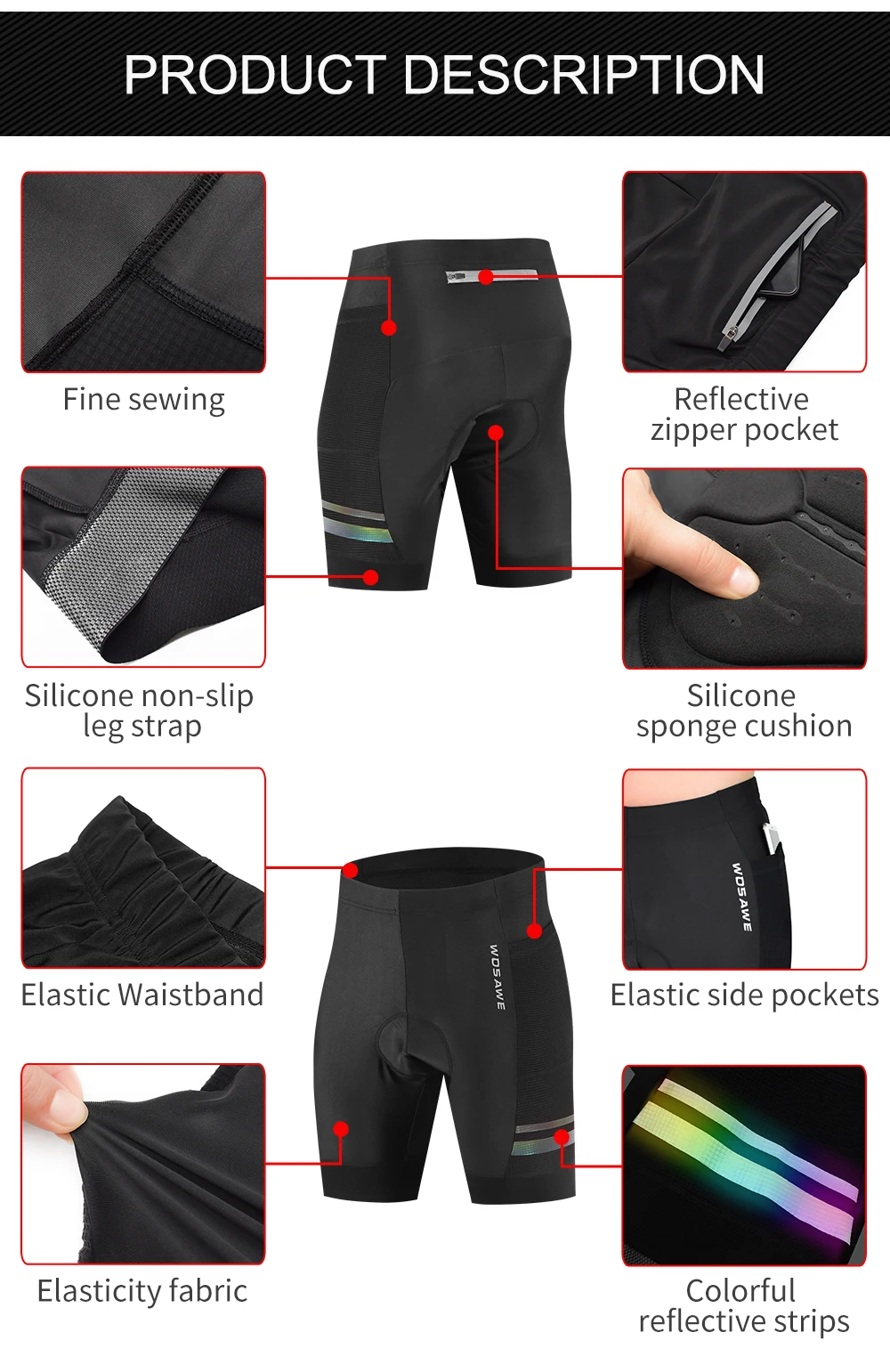 Велосипедные шорты WOSAWE со светоотражающими вставками 5D, противо...