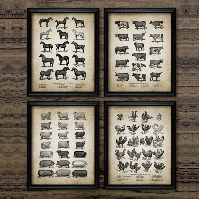Постеры с изображением птицы, свиньи, овцы и лошади