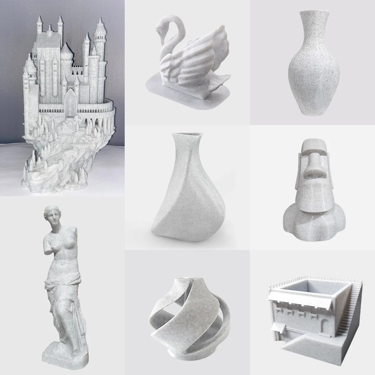 Мраморная (PLA) нить является экологически чистой, низкая усадка, текстура камня,Он совместим со всеми типами 3d принтеров FDM, подходит для печати artworksand crafts.100% без пузырьковой 3d печати нити.Мрамор PLA изготовлен из полимолочной кислоты.