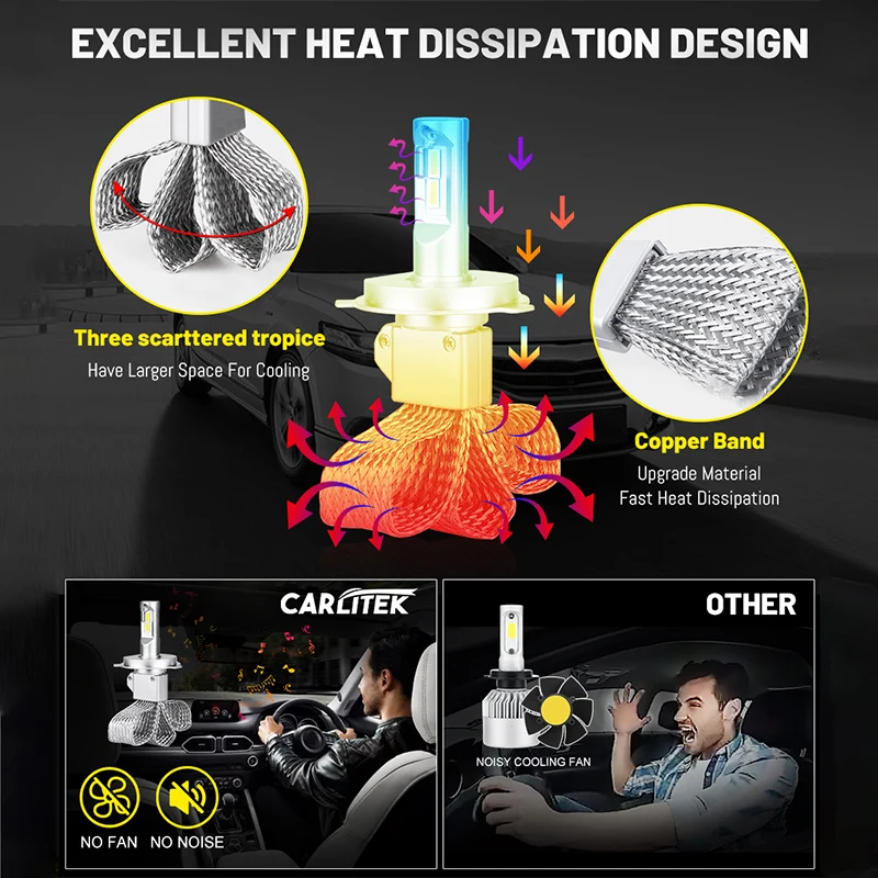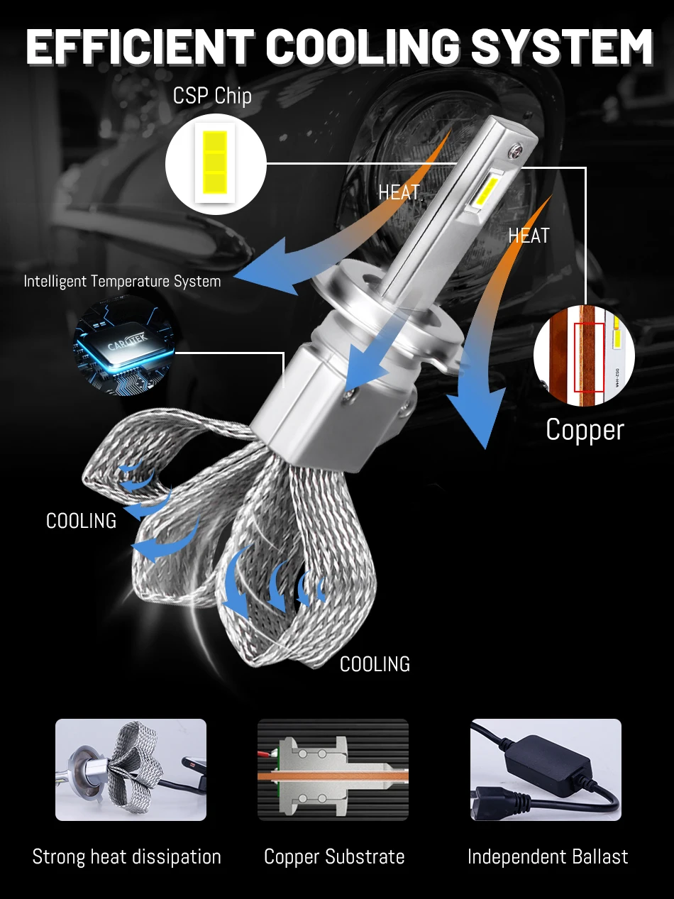 Светодиодные лампы CARLITEK H1 H4 H7 H11 без вентилятора 9005 HB3 9006 HB4 автомобильное освещение лампа для льда H8 H9 CSP Светодиодная лампа для автомобиля 12 В диодные фары
