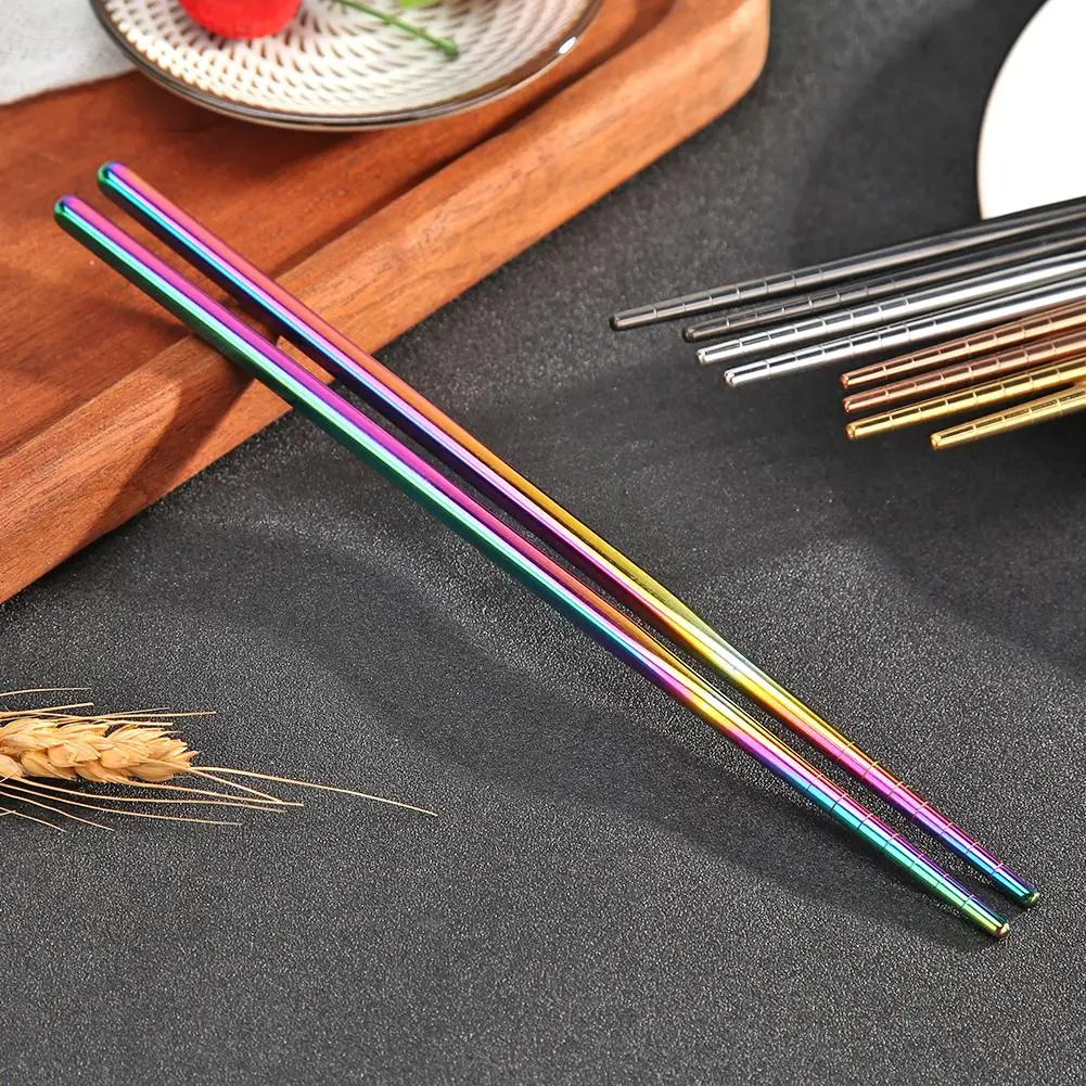 Палочки для еды, китайские, из нержавеющей стали, многоразовые, мет...