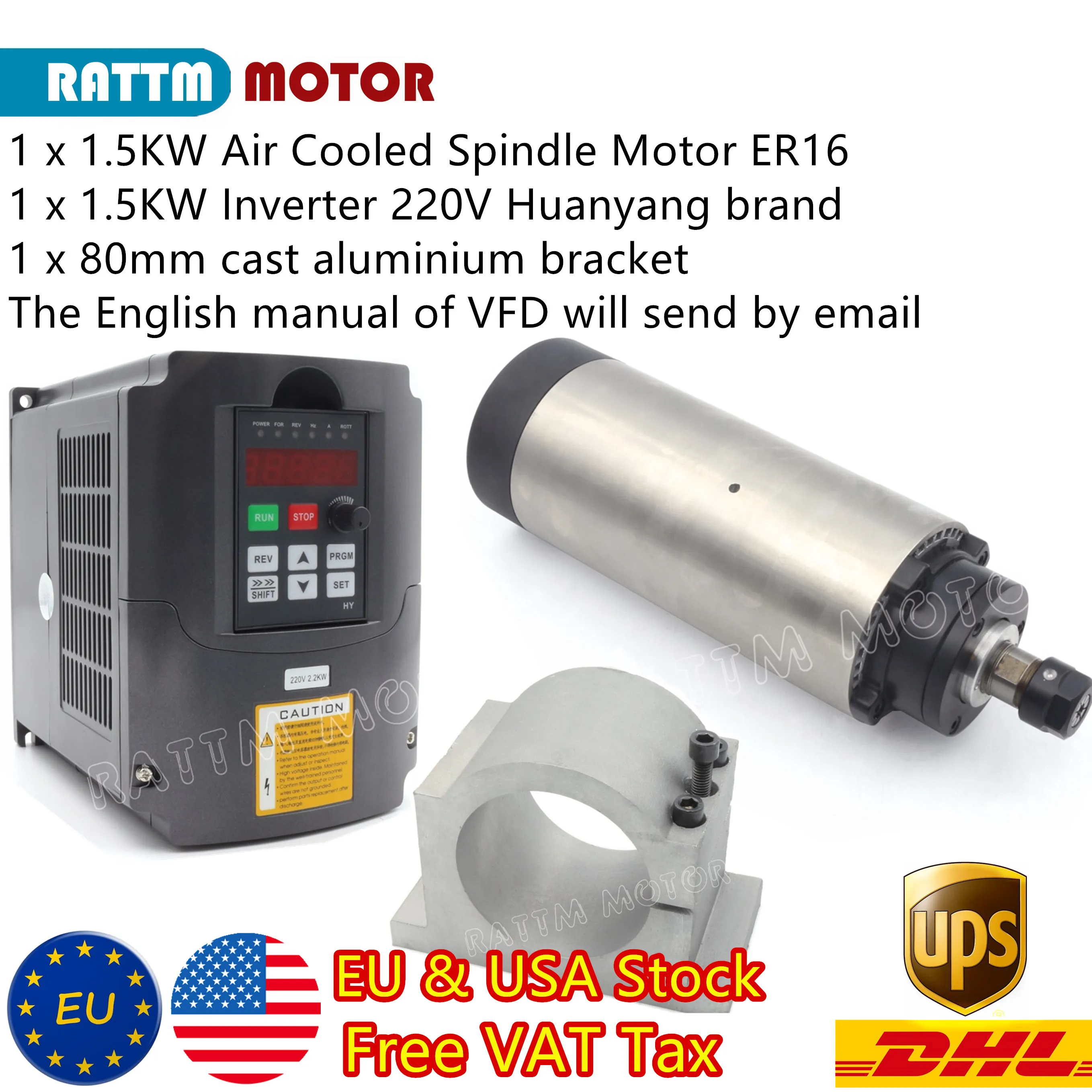 Европейский бесндс 220 кВт 24000 в электродвигатель шпинделя воздушного охлаждения ER16 обмин 8A кВт HY VFD и 80 мм зажим для гравировального станка с ЧПУ
