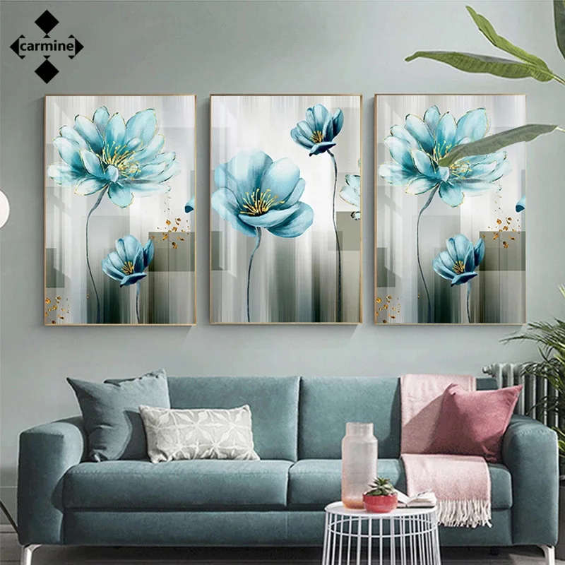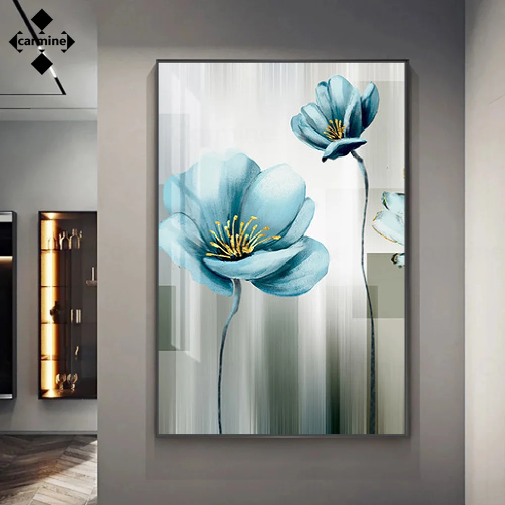 Современные искусственные синие цветы, печать на холсте, картины, декор для гостиной в скандинавском стиле, домашний интерьер, плакат без рамки