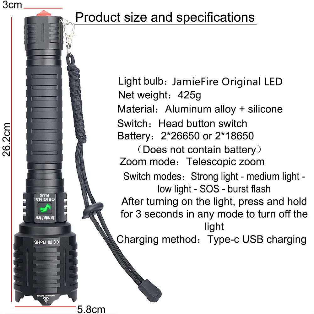 JamieFire светодиодный Вспышка светильник Мощная Вспышка светильник ярких Фонари масштабируемый USB Перезаряжаемые тактический фонарь 100000 люмен