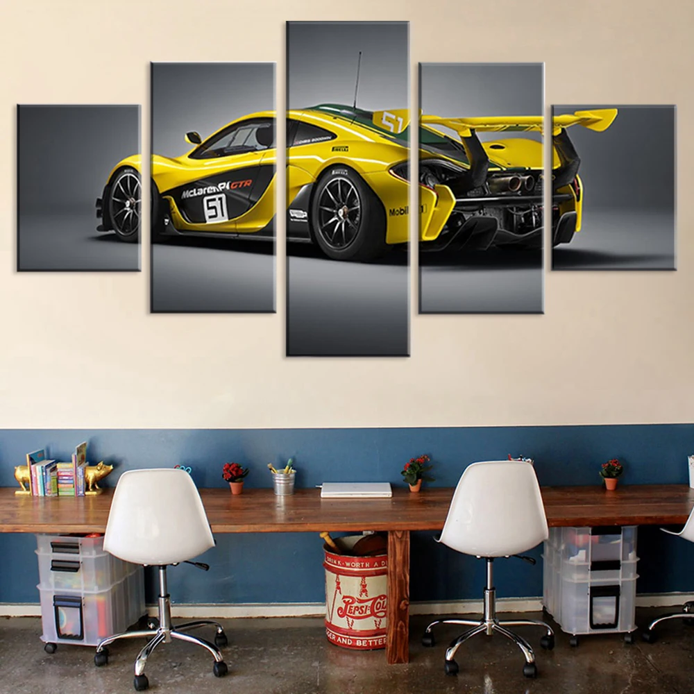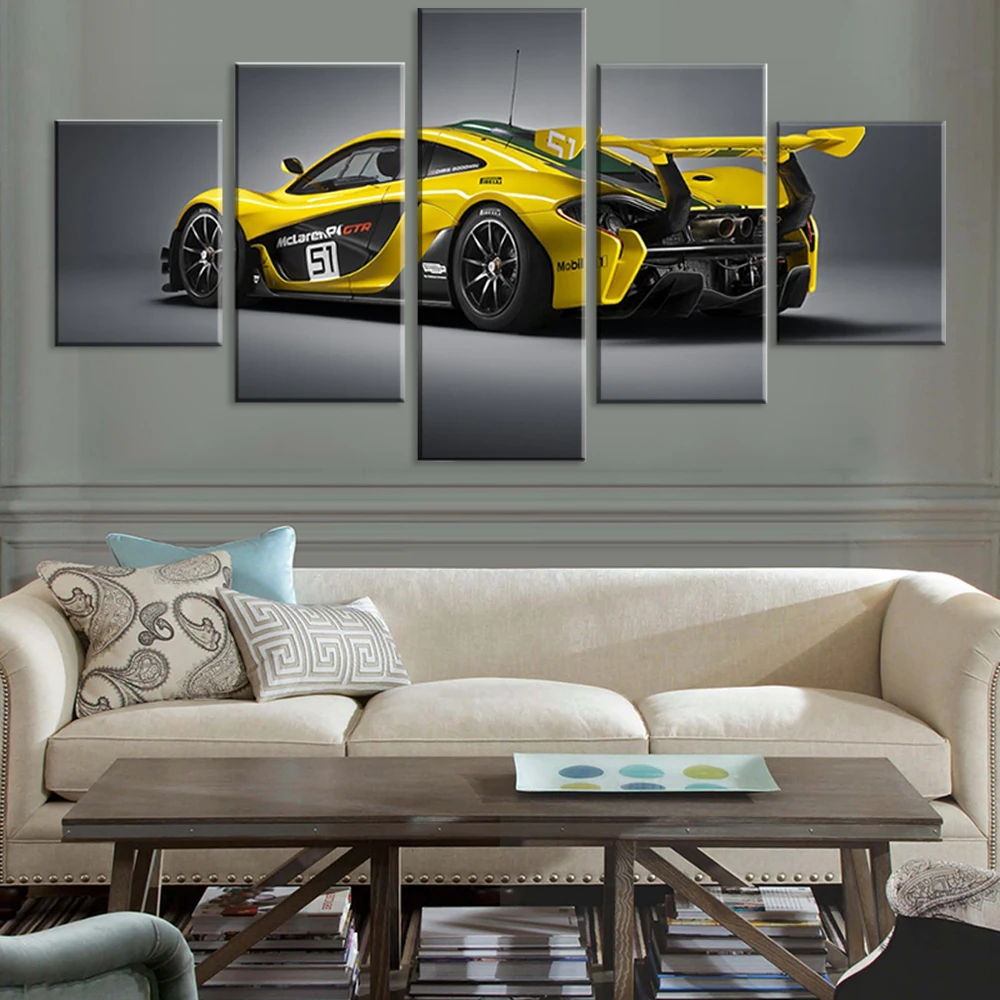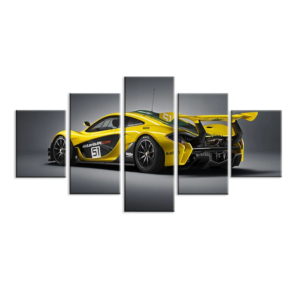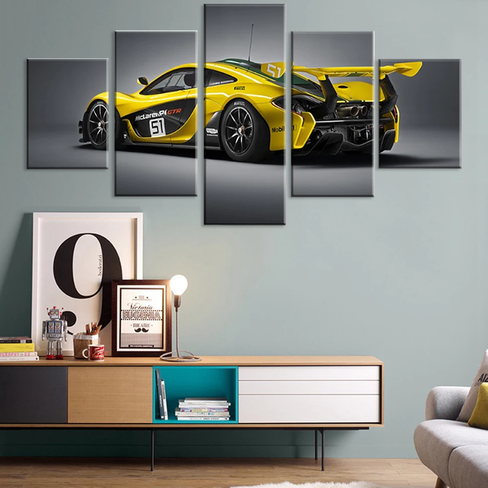 Модульный плакат, настенное искусство, холст, HD печатная картина, 5 шт., желтая Роскошная Спортивная живопись автомобиля, Современная гостиная, рамка для домашнего декора