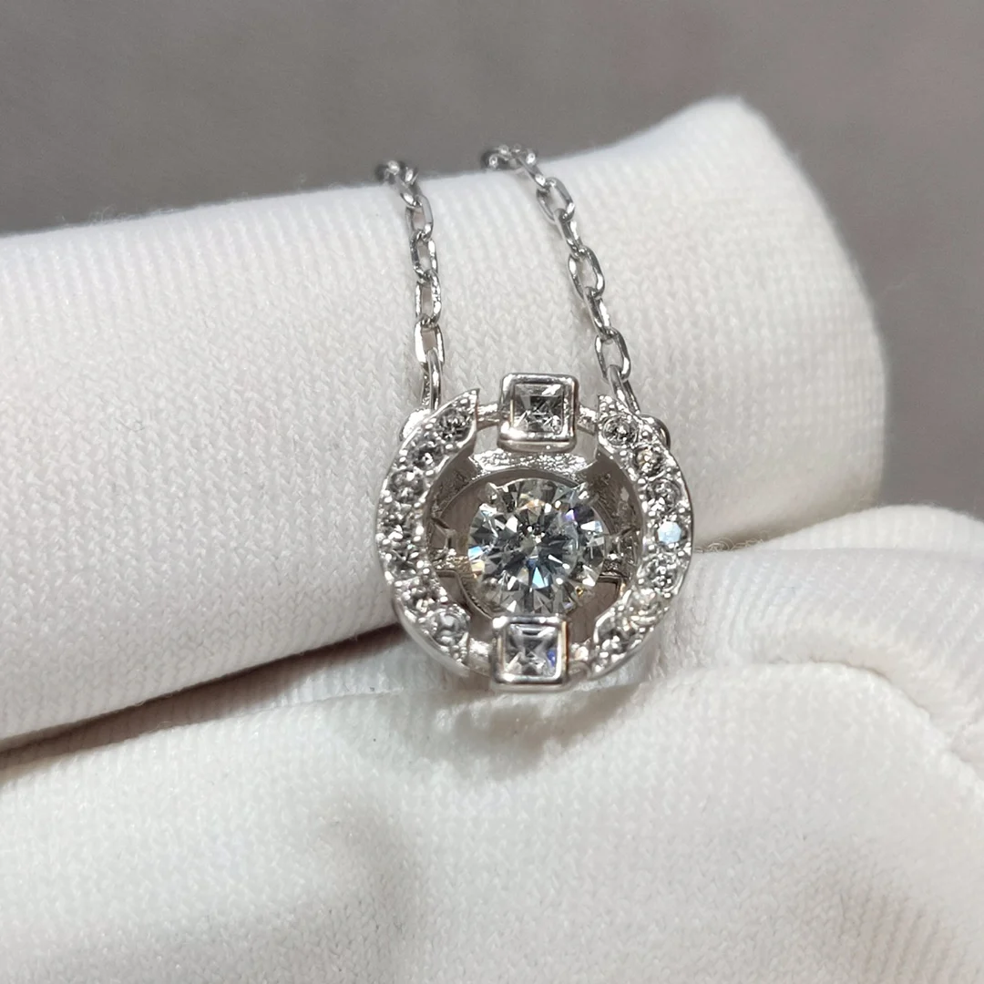 Новое поступление, серебро 925, оригинальный бриллиант 1 карат, проверенный ранее бриллиант бриллиантовой огранки, D цветной Муассанит, танцующее сердце, Круглый Кулон, Ожерелье
