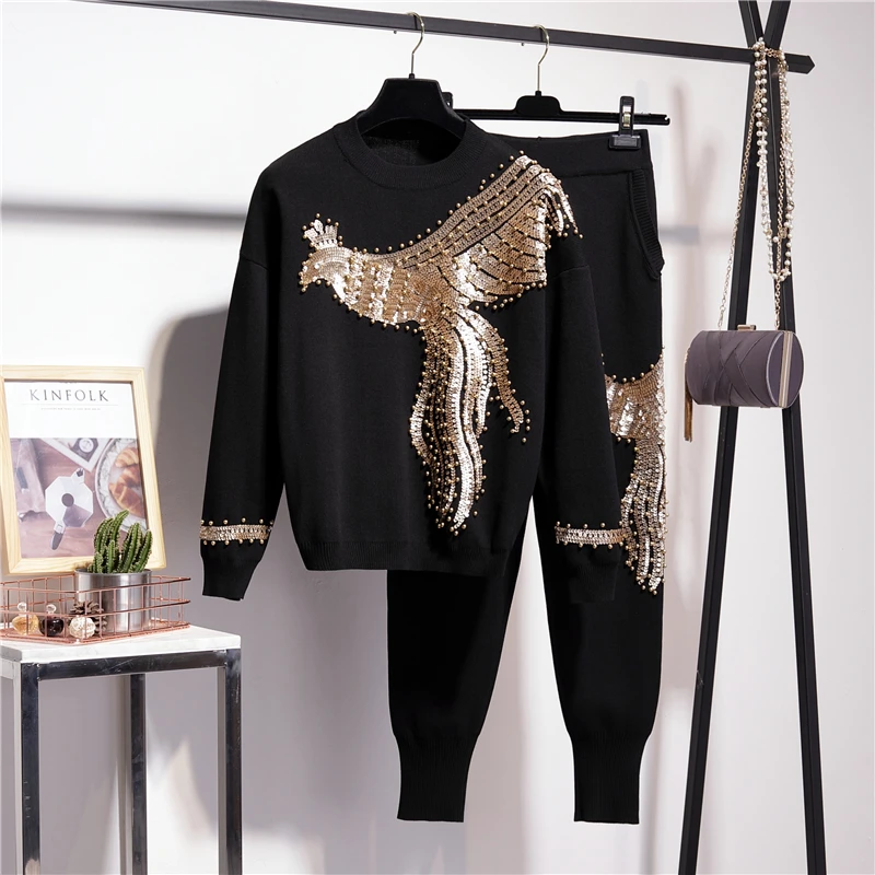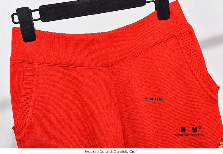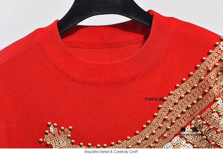 Модный красный вязаный спортивный костюм с бисером и блестками Фени...