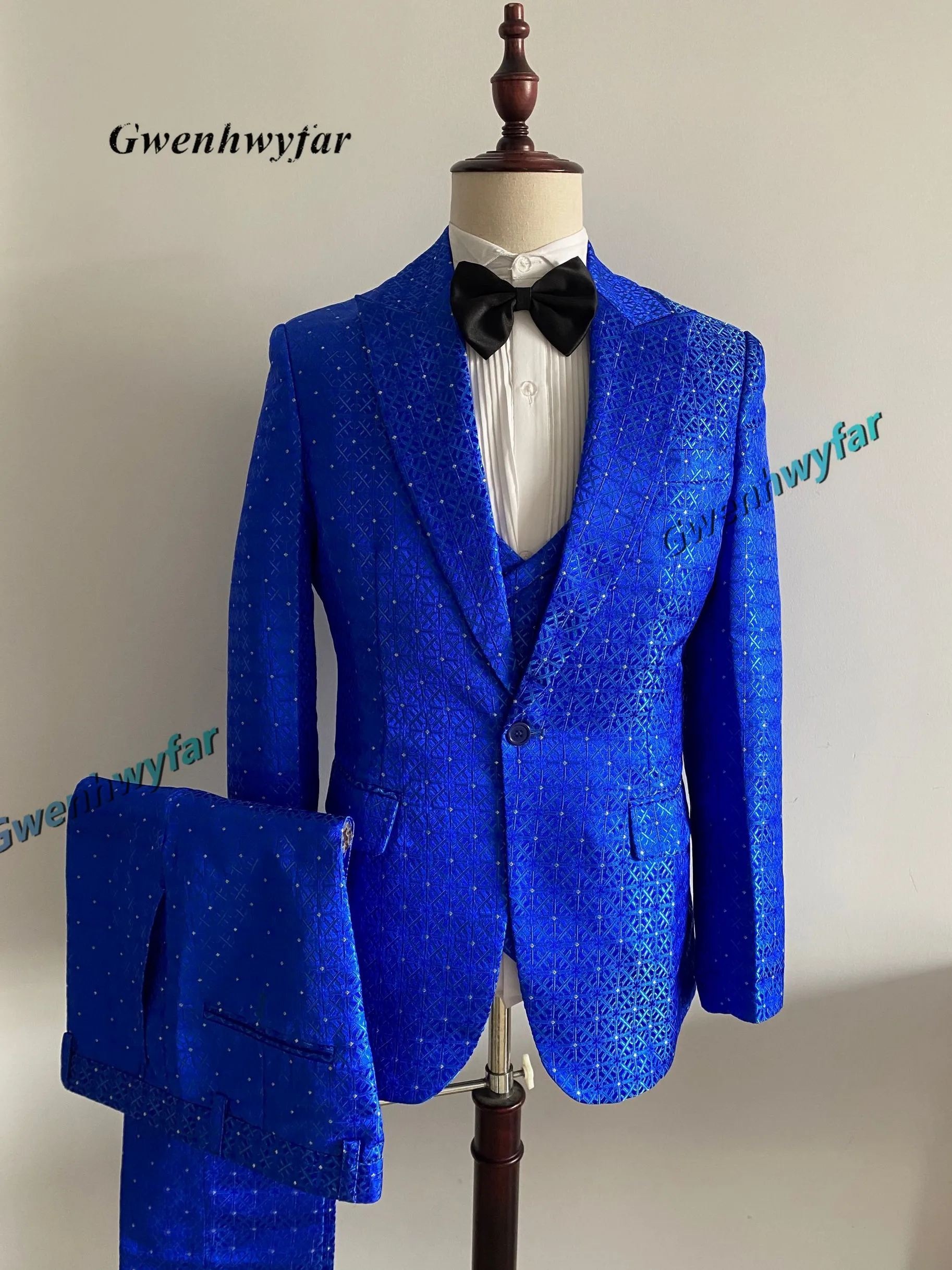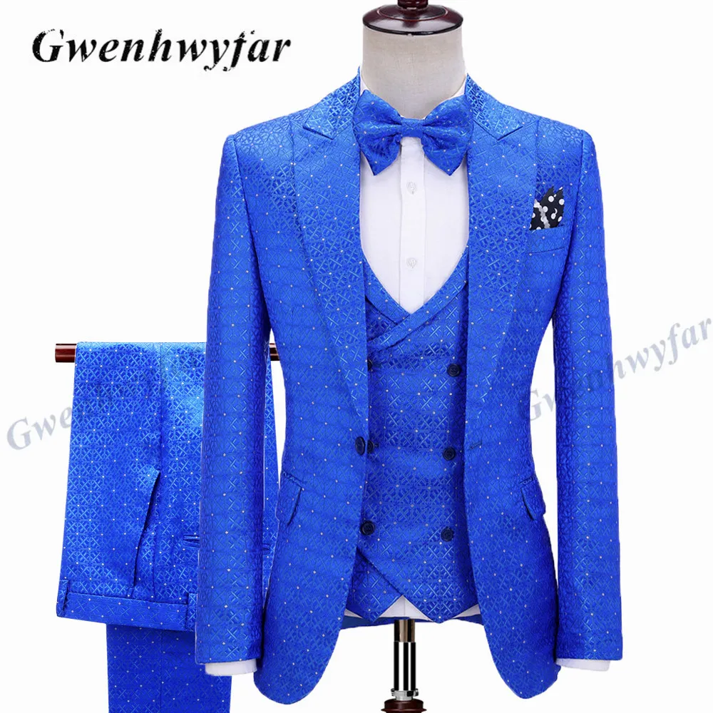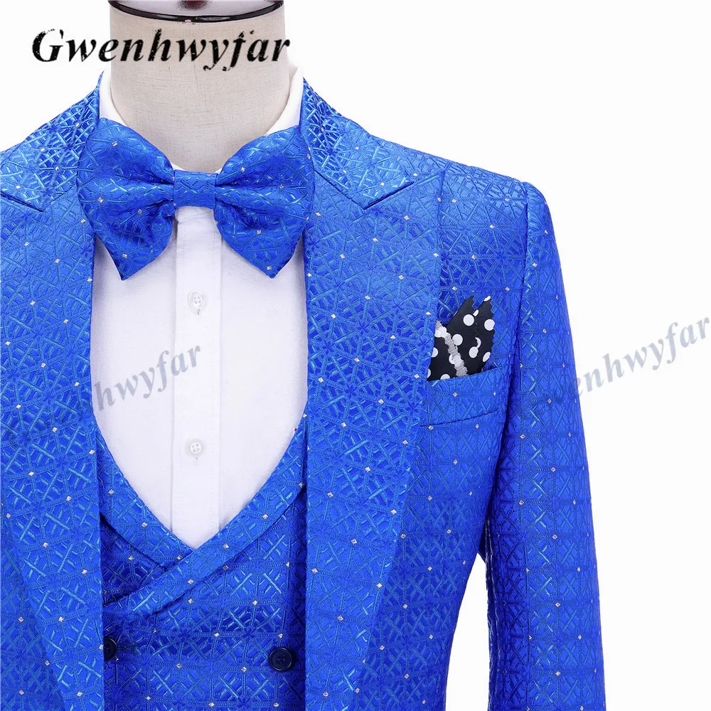 Жаккардовый жаккардовый пиджак Gwenhwyfar Королевского синего цвета, мужской костюм, облегающий свадебный смокинг, индивидуальный пошив, свадебвечерние костюмы для жениха, костюм для вечеринки