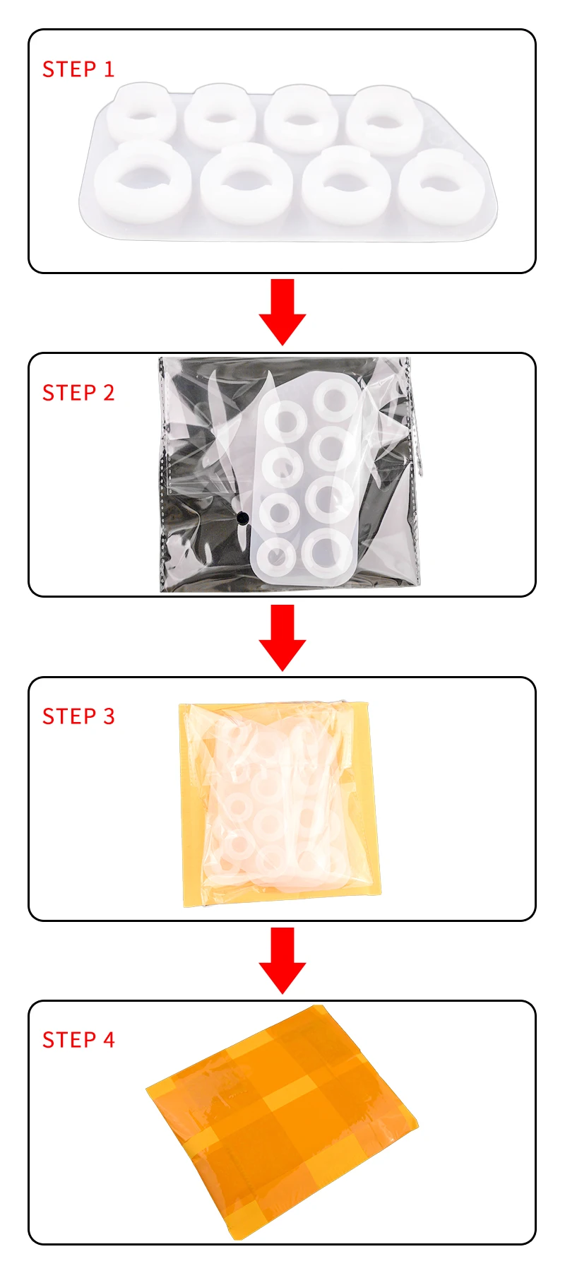 Я еще не пробовал эту форму, но я могу прокомментировать, как она выглядит. «Лоток Для Кошачьих Колец» прибыл в Австралию в течение 3 недель. Мягкий лоток хорошего качества с восемью (8) оттисками разных размеров колец. Форма чистая и хорошего качества. Я уверен, что при отливке смолы каждое кольцо будет идеальным.