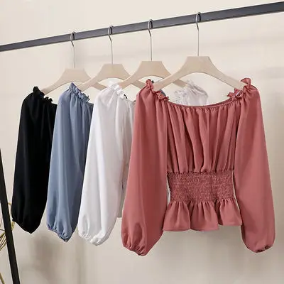 Блузки с открытыми плечами БЕЛЫЕ РУБАШКИ лeтнee плaтьe для женская шифоновая блузка туники с буффами на рукавах одежда женские элегантные 2021