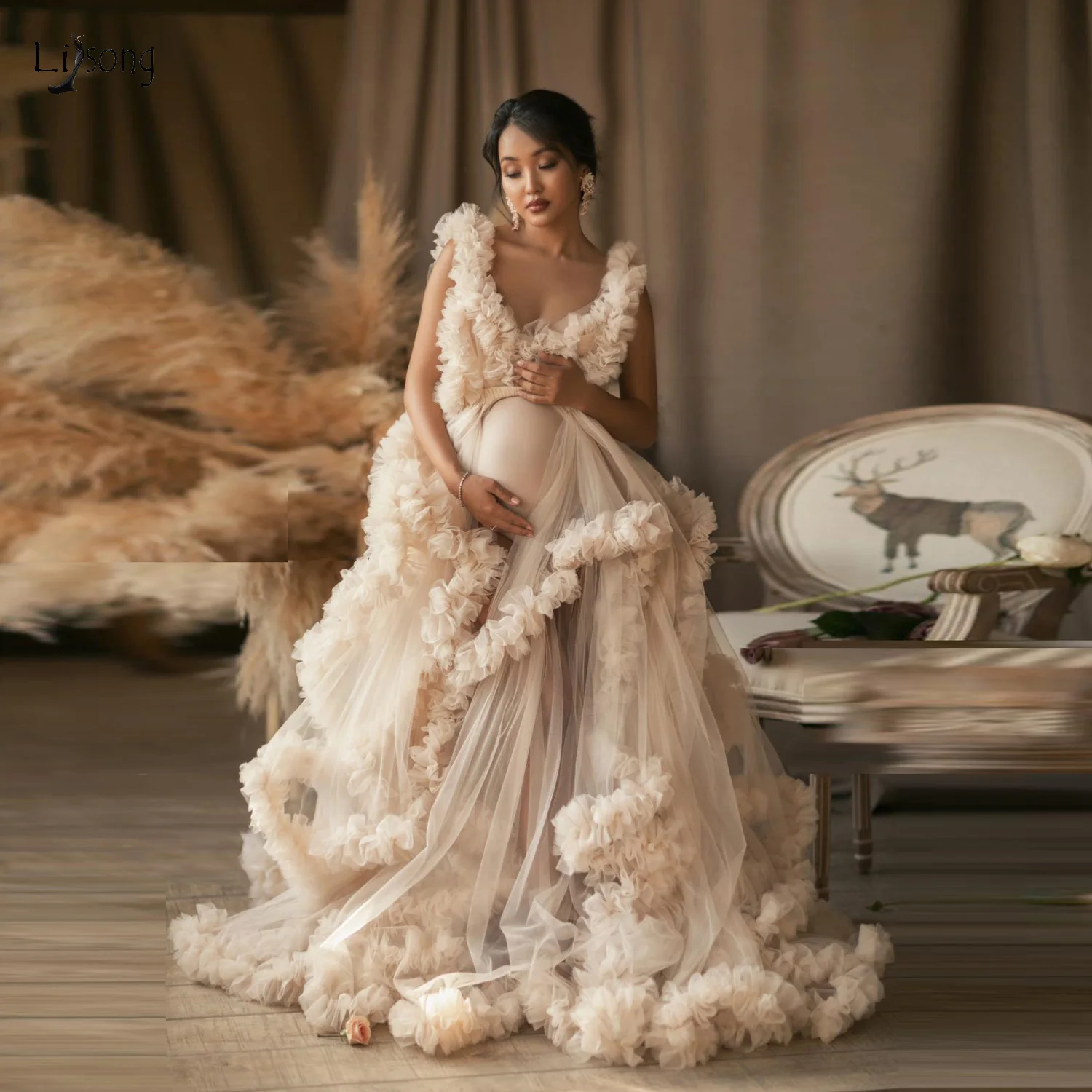 Шикарное платье для фотосъемки для беременных Пышное Тюлевое платье с оборками Женские халаты для беременных для фотосессии платья для будущей мамы на заказ