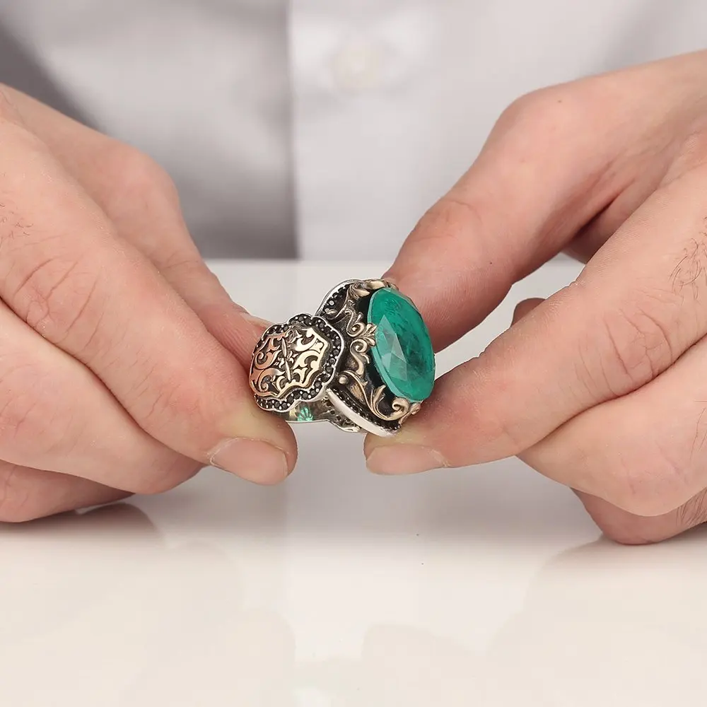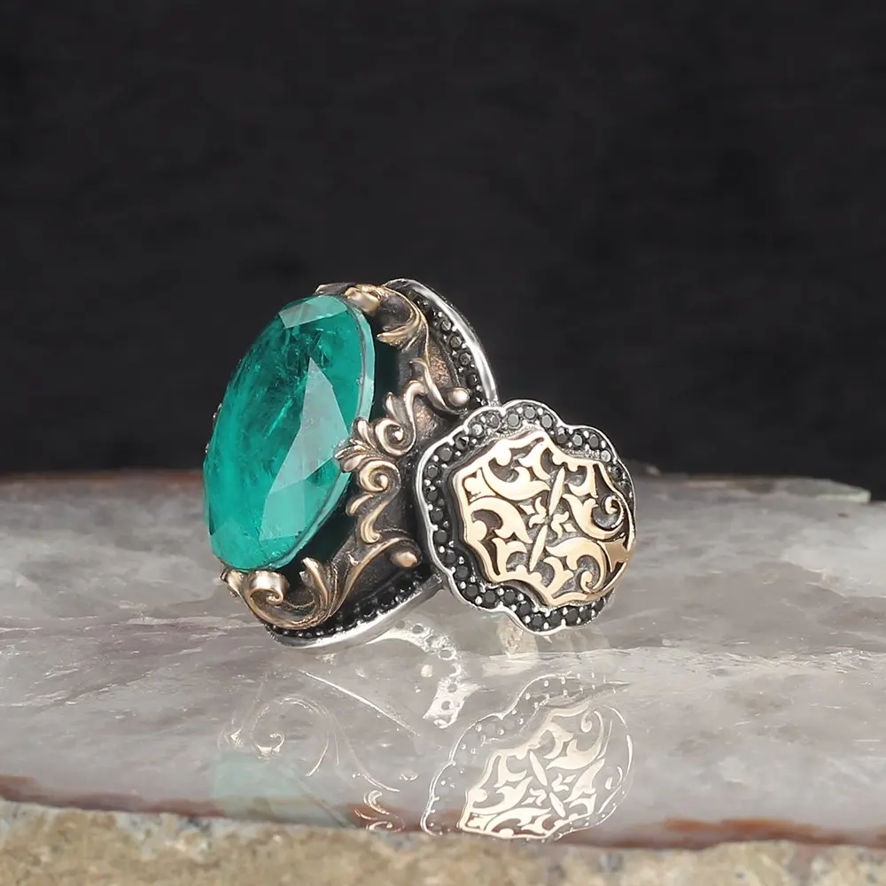 Кольцо из стерлингового серебра 925 К, камень параиба с блестящими микроцирконовыми камнями, классические украшения для мужчин, винтажный стиль, подарок ручной работы