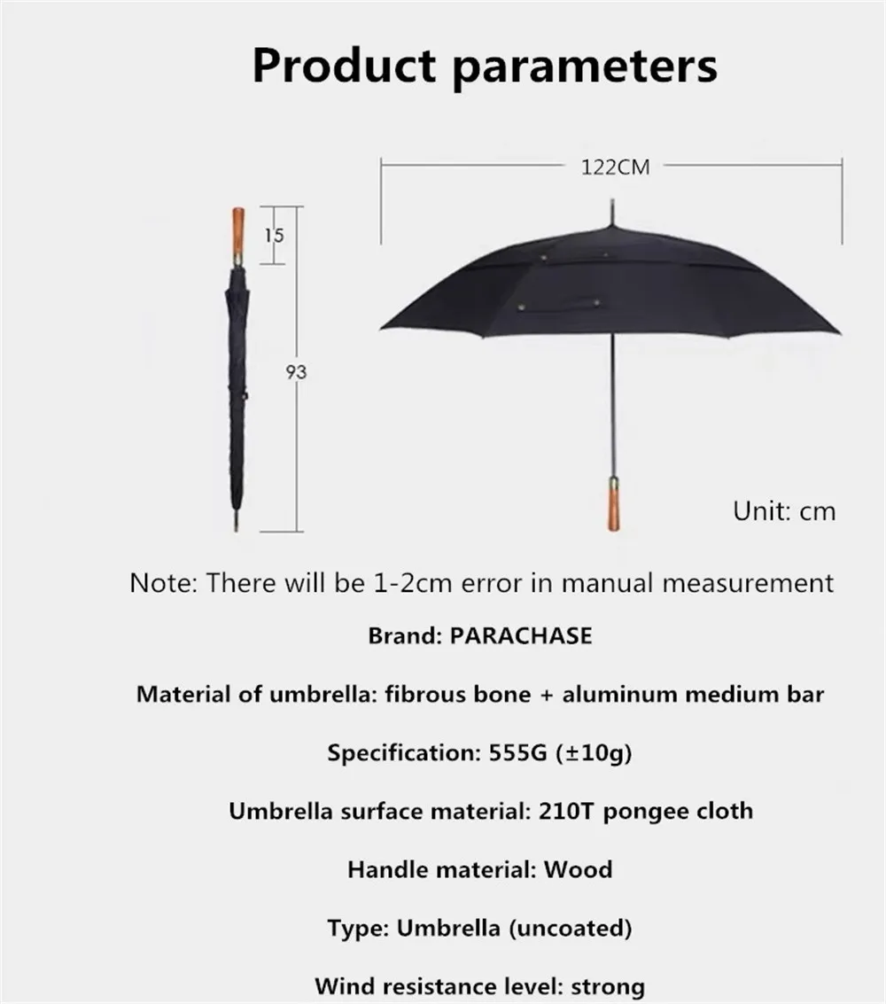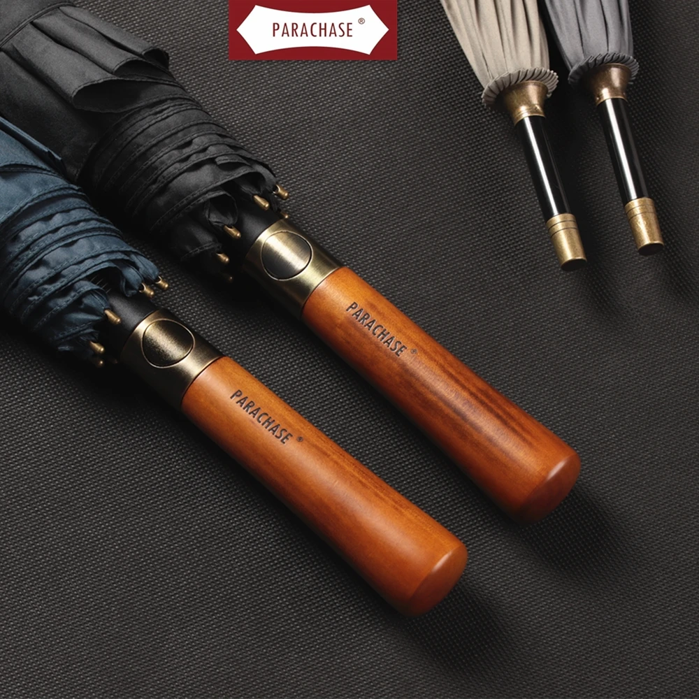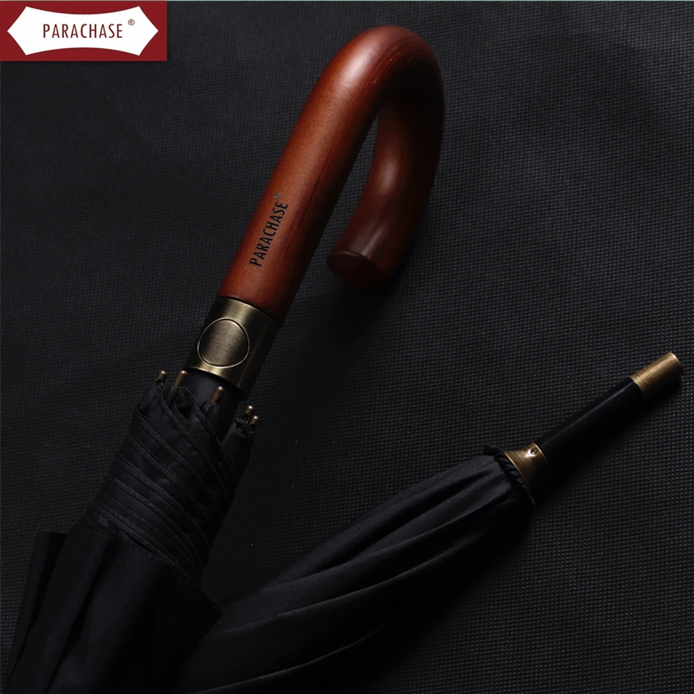 Длинный зонт с прямой ручкой PARACHASE, зонт с изогнутой ручкой, деревянный слой, для бизнеса и улицы, 122 см, Мужская эпонж-ткань
