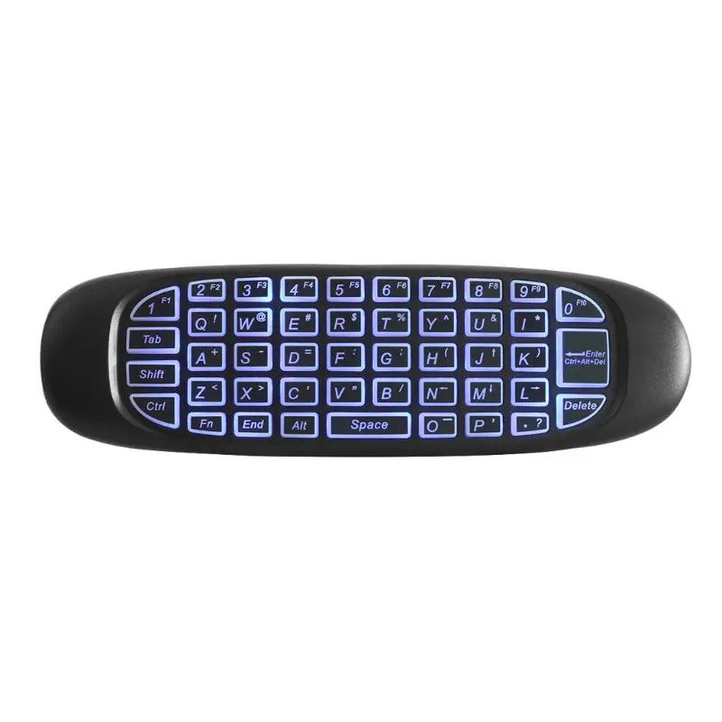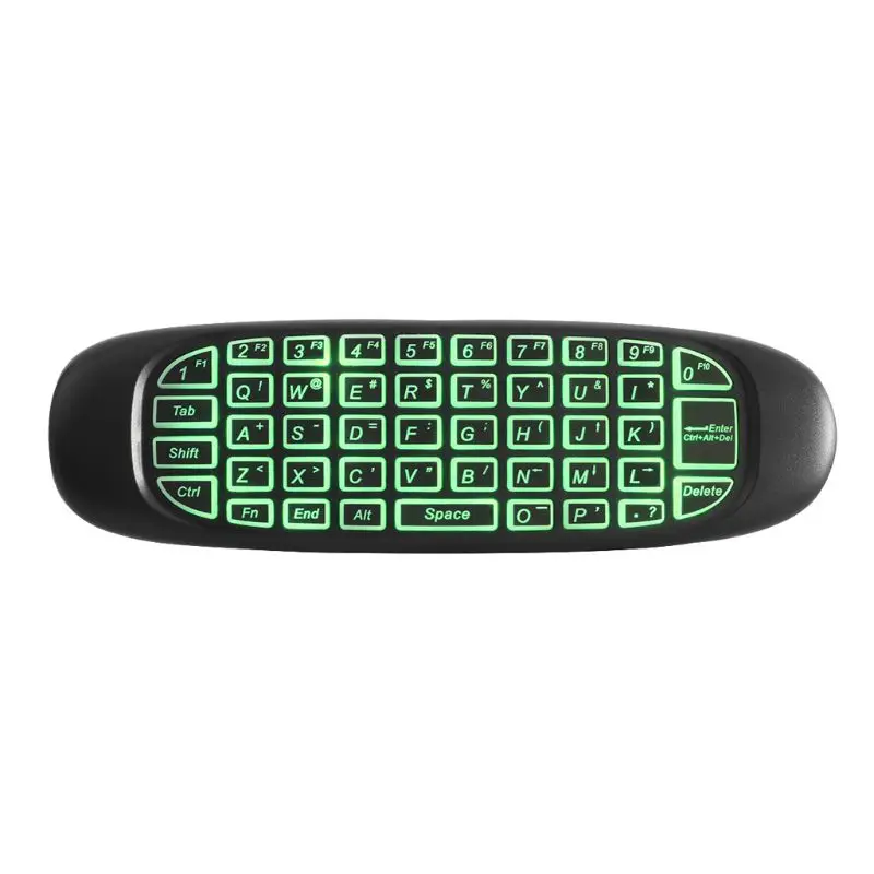 C120 RGB 3 подсветка Fly Air Mouse беспроводная клавиатура G64 для ПК TV BoxOOTDTYПримечание:1, встроенный 3 цвета с подсветкой, вы можете нажать «Fn + пробел», чтобы переключить различную заднюю панель2, с батареей: Он питается от литий-ионного аккумулятора (включая), и может быть заряжен через USB кабельОписание товара1. Поставляется с 2,4 ГГц QWERTY клавиатура + пульта дистанционного управления + Воздушная мышь 3-в-1 функции способны удовлетворить любые ваши потребности.2.2.4 ГГц технология беспроводной передачи, супер диапазон подключения может быть до 10 метров.3. Используя уникальную шестиосевую технологию гироскопа с 360 градусов в любом захвате, легко установить запястье, точно контролировать курсор мыши.4. Пульт дистанционного управления специально разработан для устройств android. Встроенная перезаряжаемая литиевая батарея, зарядка с помощью компьютера или другого постоянного тока 5 В.5. Светодиодный светильник индикатора для работы. Интеллектуальный антивибрационный дизайн, высокая стабильность. Совместимость с android/Windows/Linux/Mac.Характеристики:Модель: C120Тип: Воздушная мышьПодсветка: 3 цвета подсветки (как показано на фотографии)Голос: без микрофонаХарактеристики: мини, перезаряжаемыйМатериал: пластикПоддержка системы: для android,Linux,Mac OS,WindowsИнтерфейс: беспроводнойПодключение: USB2.0Диапазон частот: 2,00-2,483 ГГцРабочий ток: le 20mAТок сна: le 20mAДиапазон передачи: 10 мИсточник питания: литий-ионный аккумуляторПосылка включает в себя:1 x клавиатура C120 без микрофона1 х USB кабельРуководство пользователя на английском языке-1 шт.
