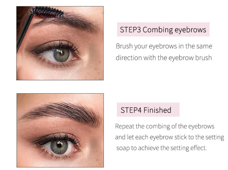 3. Повторите расчесывание бровей и позвольте каждому карандаш для бровей установить мыло для достижения эффекта настройки.