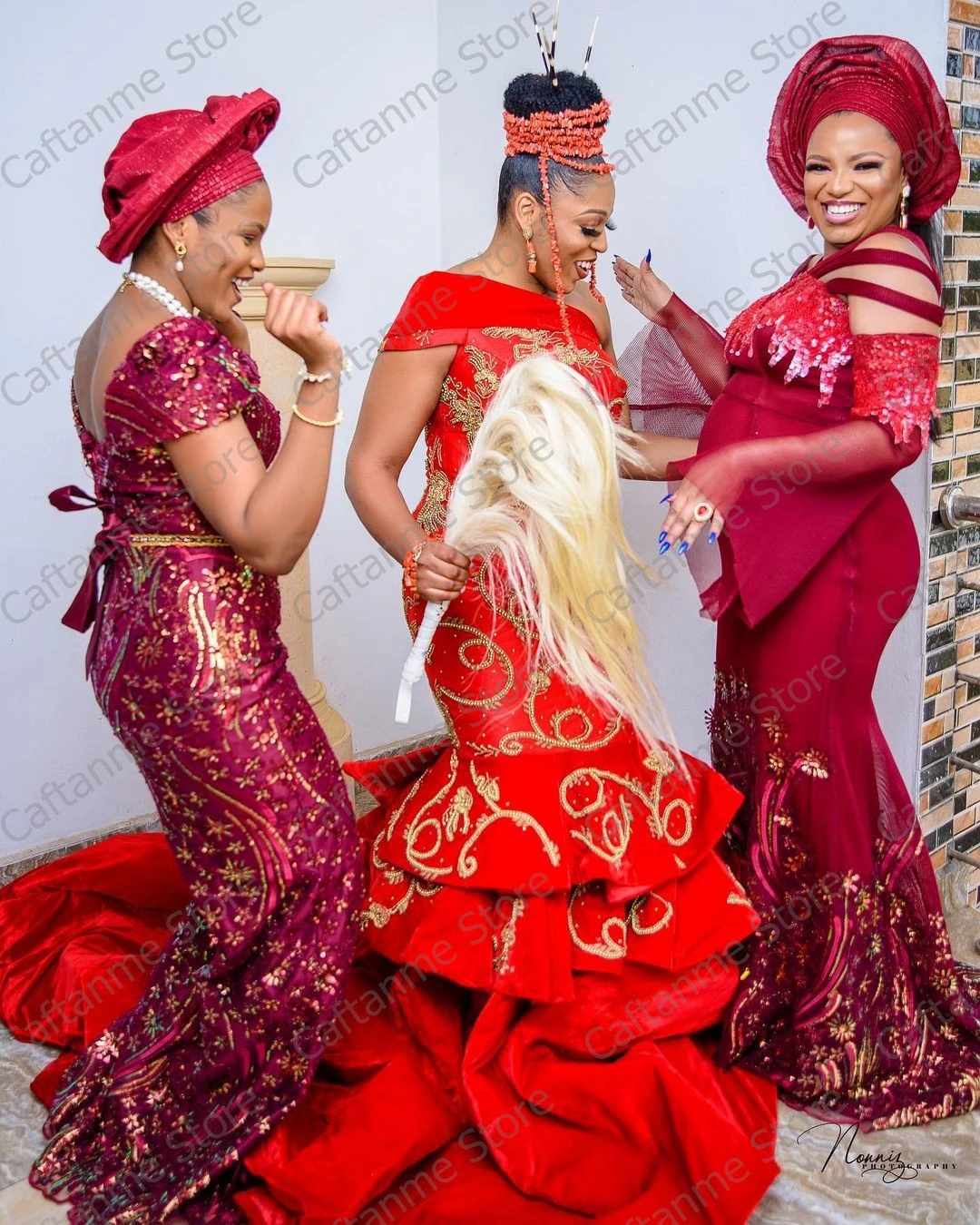 Золото под традиционное платье Aso Ebi платья подружек невесты руса...