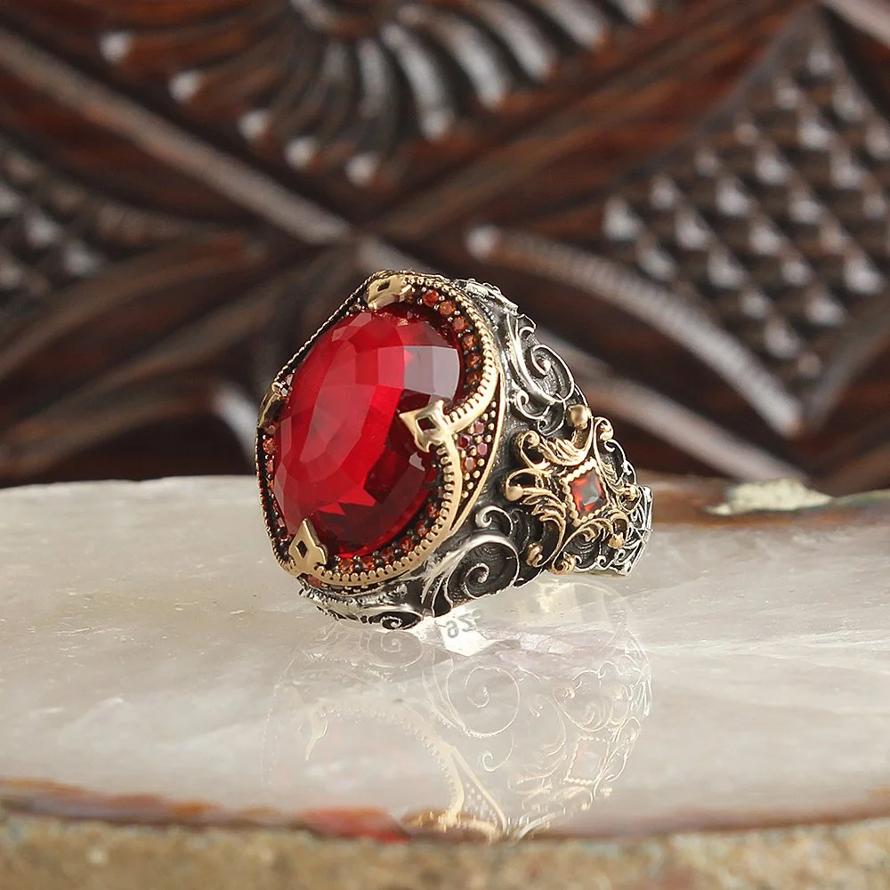 Стерлингового Серебра 925 К Кольцо Кристалл Огранки Красный Циркон Драгоценный Камень С Блестящими Камнями Мужские Ювелирные Изделия Высокого Мастерства Аксессуар Класса