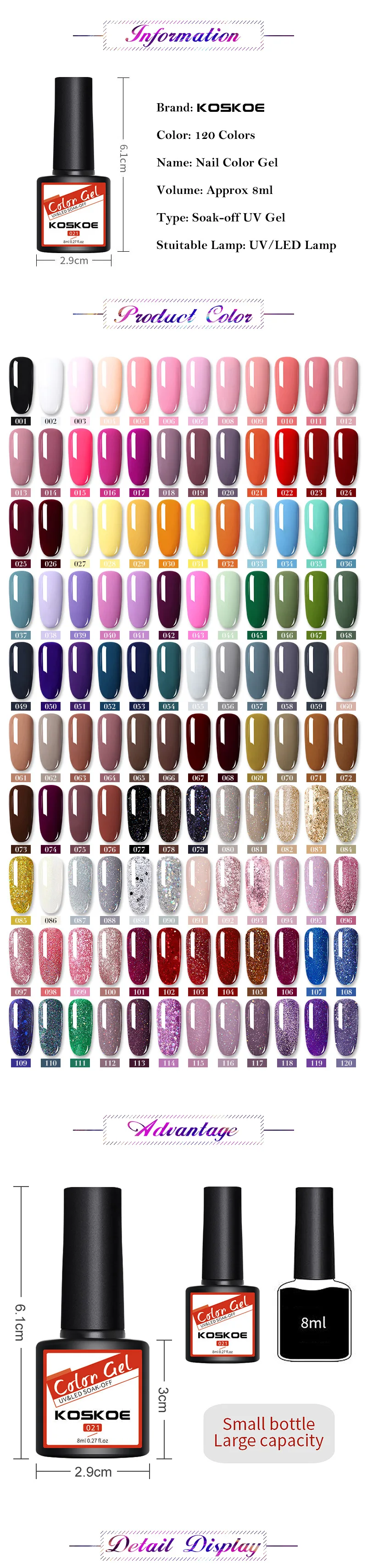 Набор гель-лаков KOSKOE для ногтей, 12 шт., 120 цветов, УФ светодиодный блестки, отмачиваемые гель-лаки для дизайна ногтей