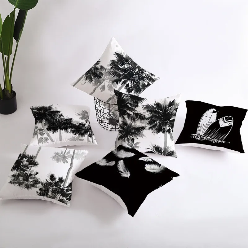 Наволочка для подушки с чернильным рисунком 45x45, черно-белая наволочка из полиэстера, декоративная наволочка для домашнего дивана