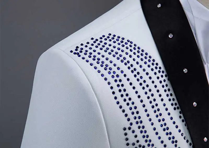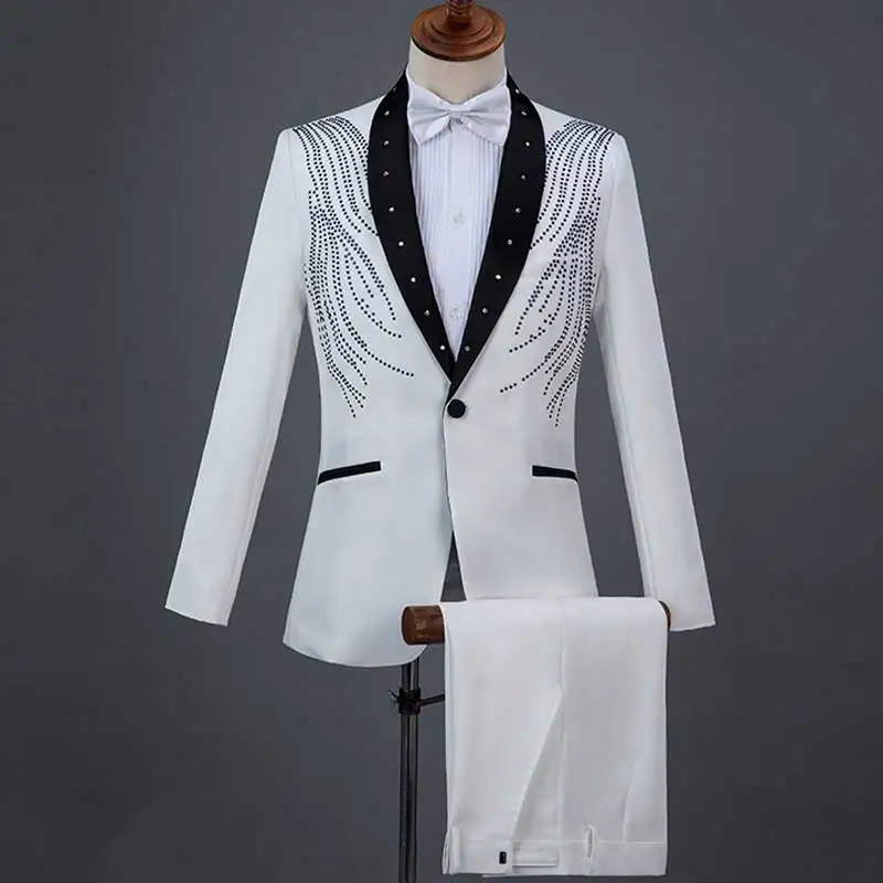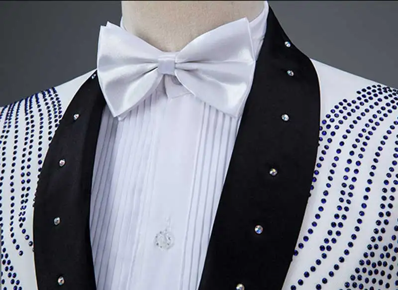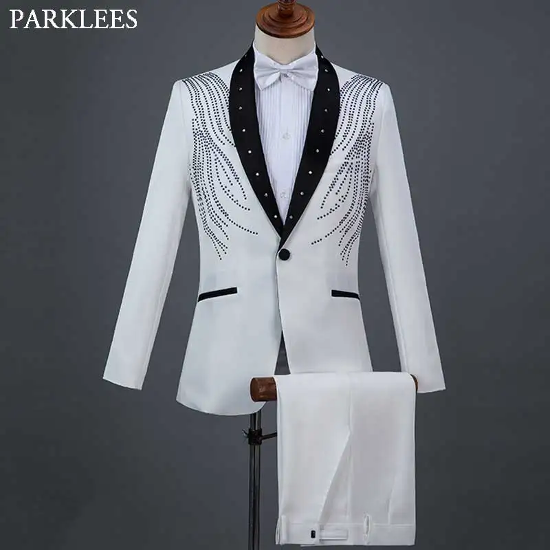 Стильный вышитый кристаллами белый костюм для мужчин в стиле пэчворк с воротником-шалью на одной пуговице, костюмы, брюки для мужчин, смокинг для свадебной вечеринки, костюм для мужчин