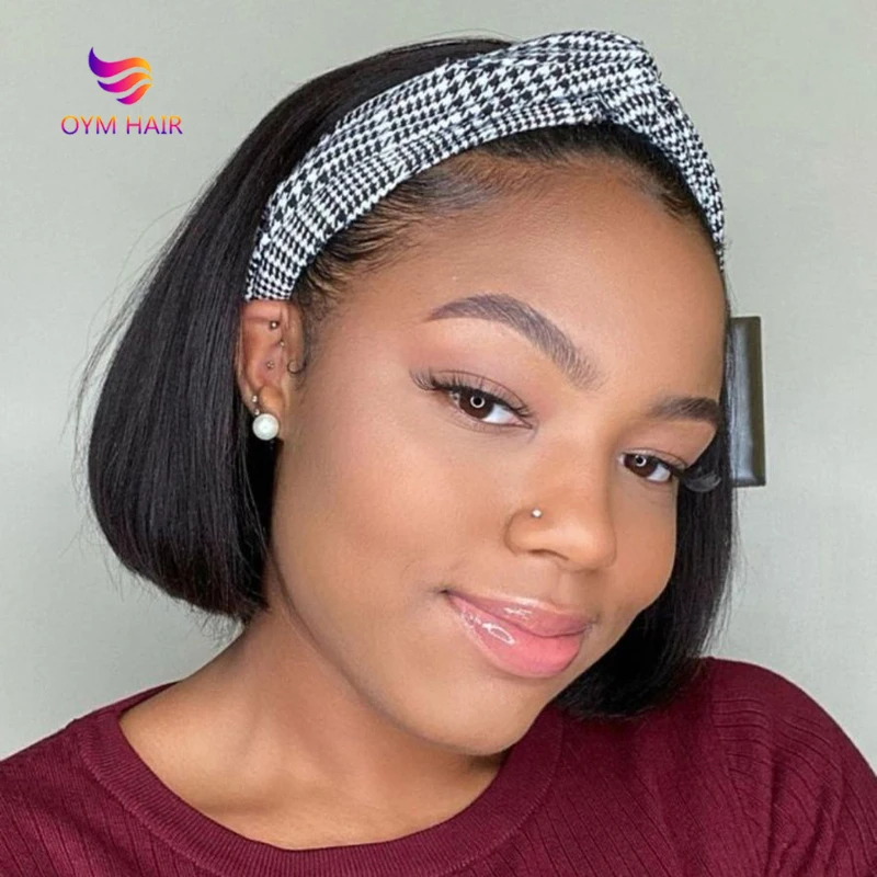 Обруч на голову короткий Боб, парики из человеческих волос плотностью 180%, малайзийские прямые парики боб, человеческие волосы для черных женщин, парики для шарфа с повязкой на голову