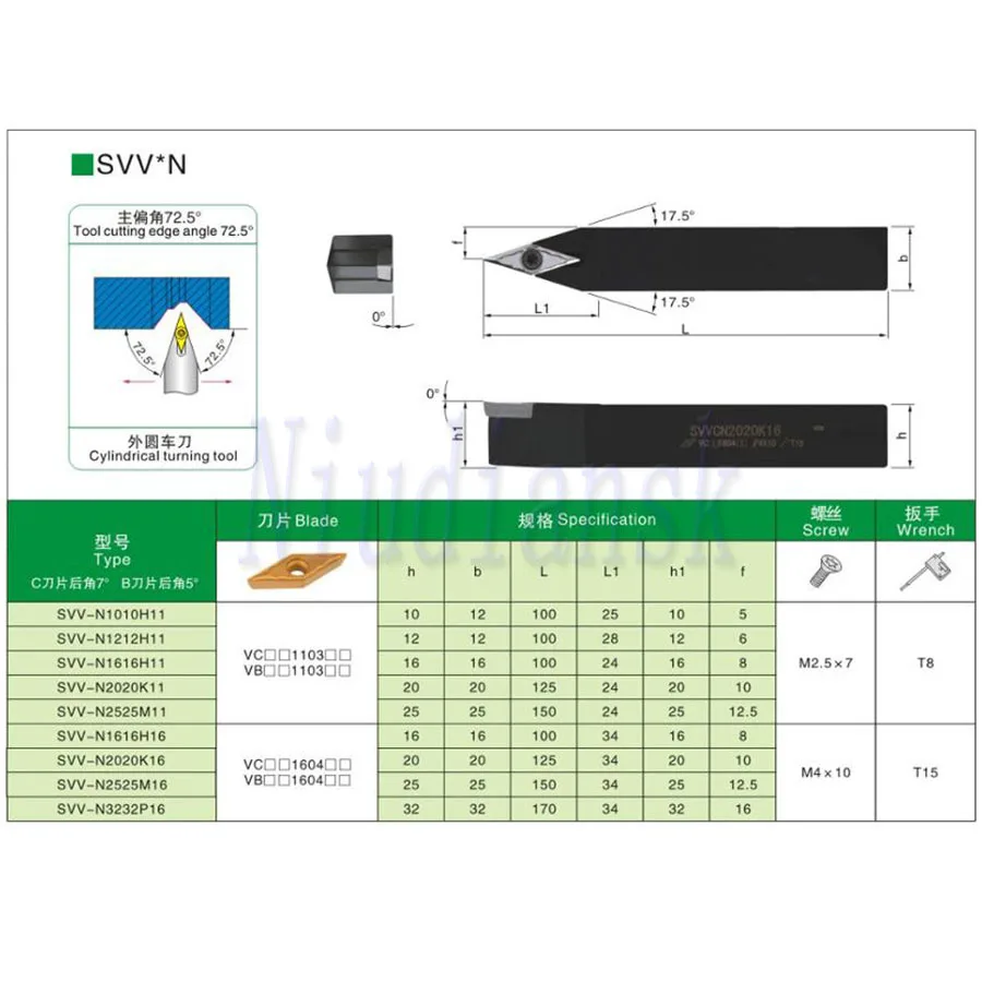 Набор резцов для токарного станка SVVCN1010 SVVCN1212 SVVCN1616H11, твердосплавные втулки vvcn2020k11 SVVCN2525M11 VCGT1103, 10 шт.