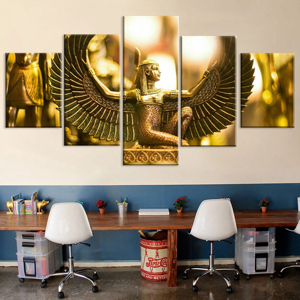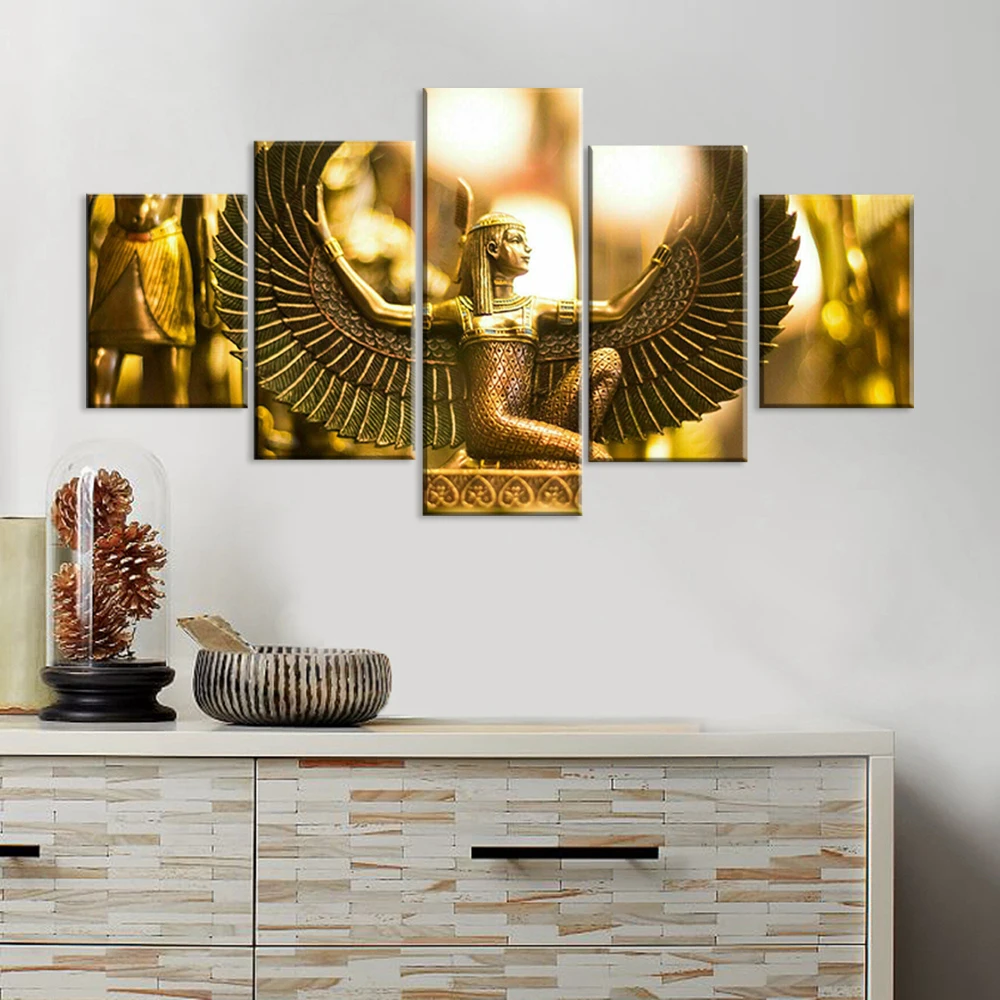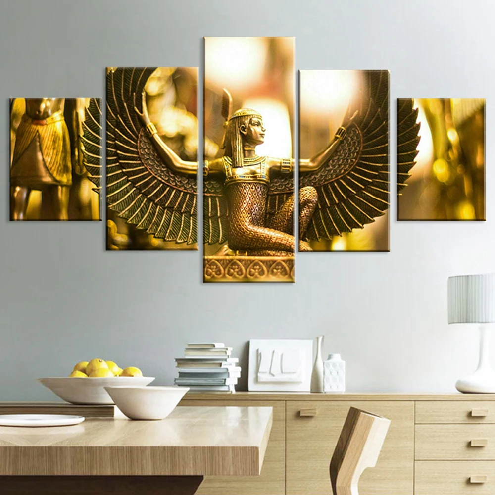 5 панелей, Картина на холсте с изображением богини Исиды, крыла Египта, настенное искусство, Декор для дома, модульные картины, плакаты и принты, декор для гостиной