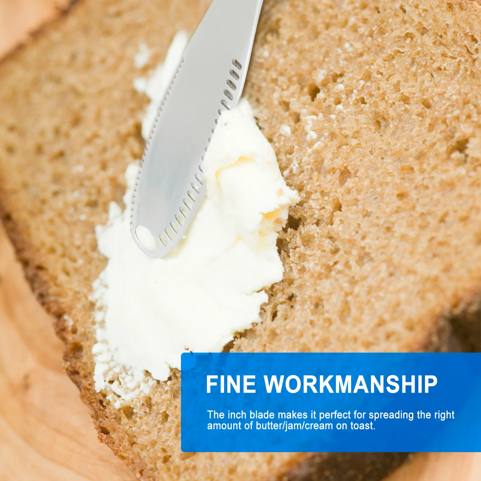 Ваш хлеб больше не будет разорван на кусочки, небольшие прорези, бегущие по краю лезвия, предназначены для завивки твердого масла на вашем хлебе. Одно большое отверстие предназначено для скручивания большего количества масла в богатый источник энергии