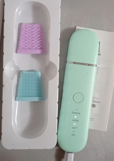 Очень долгая доставка до Беларуси.Аппарат пришёл в мятой упаковке,но при этом с ним самим всё в порядке.Прибор красивый,всё как в описании.Единственное,я так и не поняла как пользоваться насадками,которые в комплекте.При первом использовании перестаралась и ходила с красным лицом и пятнами,где сильно надавила,так что пользуйтесь аккуратнее и обязательно на влажную кожу,распарив лицо предварительно.Короче надо наловчиться,потому что чуда этот приборчик сам не сделает.