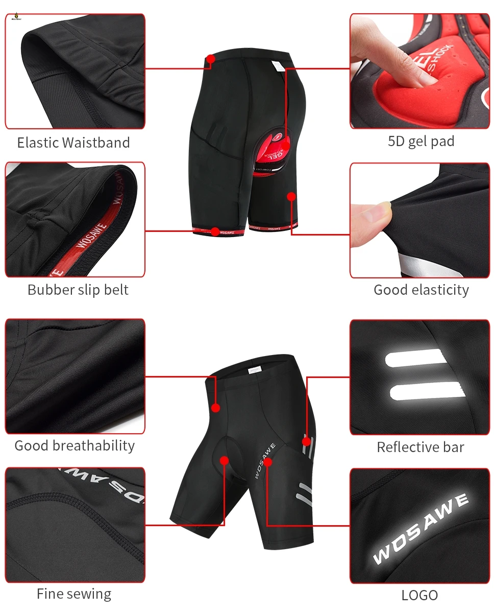 Велосипедные шорты WOSAWE со светоотражающими вставками 5D, противо...