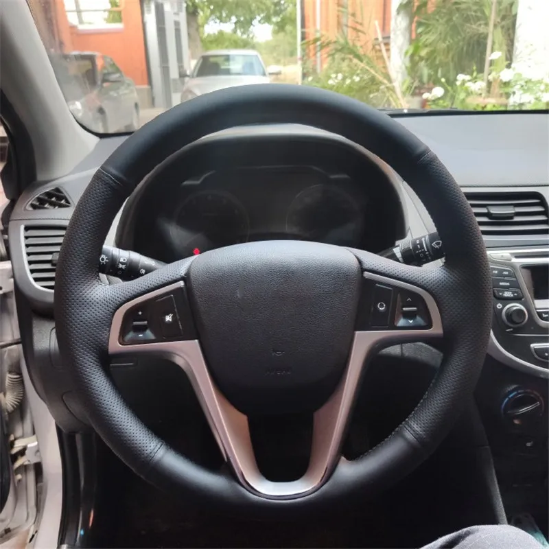Оригинальный чехол на руль, Кожаная оплетка для руля Hyundai Solaris Verna i20 i25 Accent 2009-2014, сделай сам