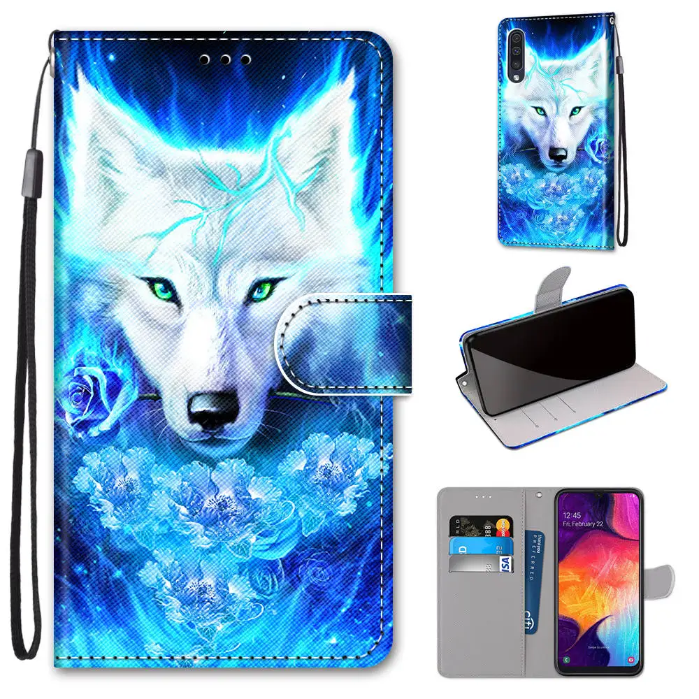 StyleCute Flower Cat Flip Woman Men grils Wallet Case For Samsung A50