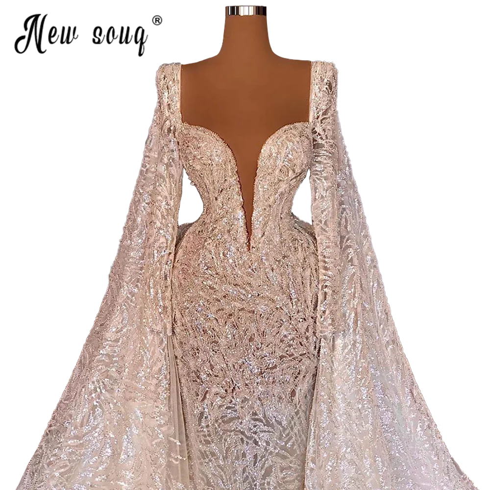 Мусульманское свадебное платье с длинным рукавом, Средний Восток, Дубай, Русалка, свадебное платье, сексуальное свадебное платье с V-образным вырезом