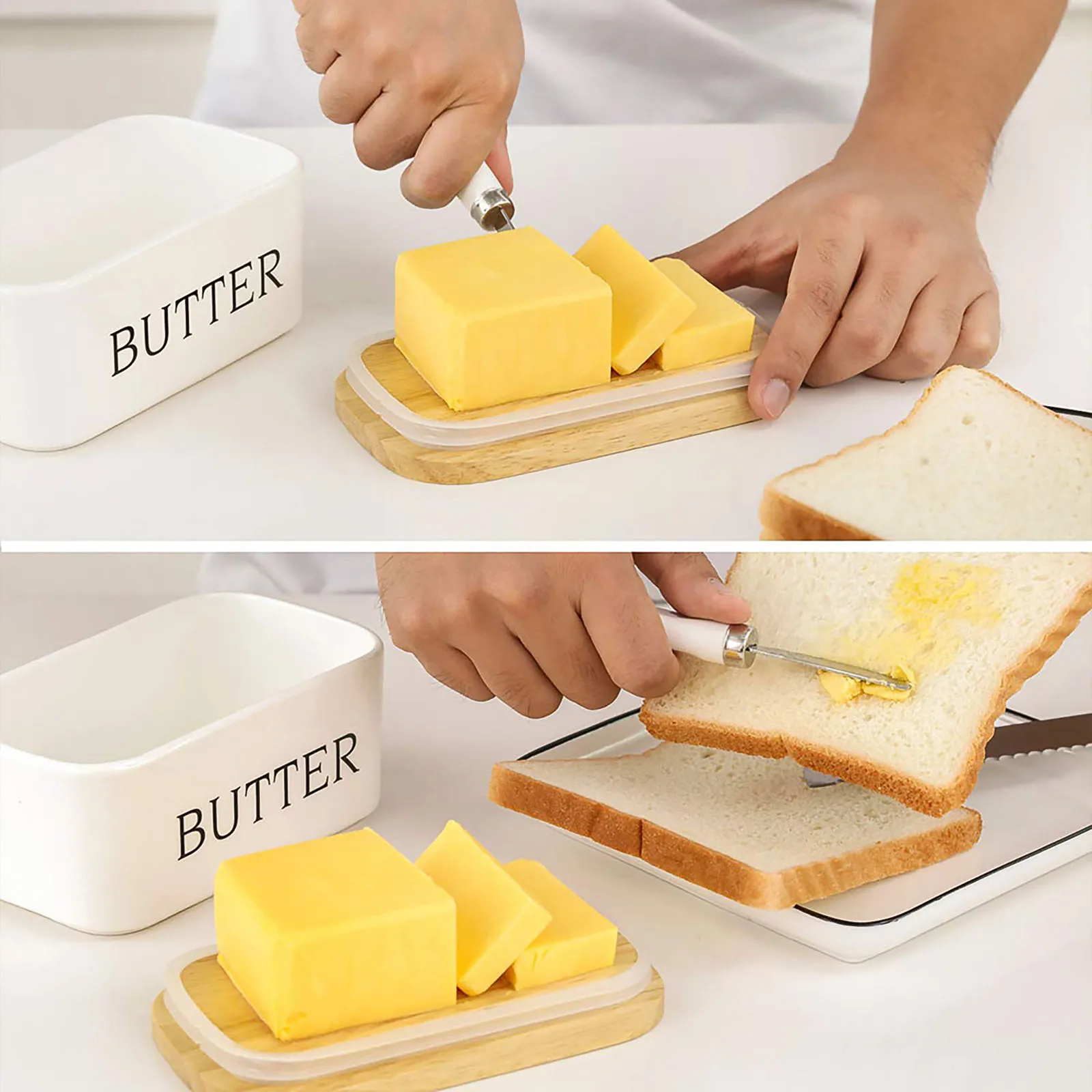 Контейнер для масла в скандинавском стиле с деревянной крышкой, нож...