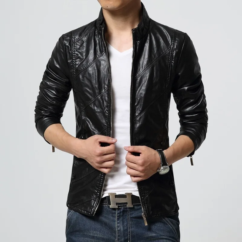 Брендовая Новинка 2021, Мужская модная кожаная куртка, мужская приталенная байкерская куртка с воротником, высококачественное мужское пальто, однотонная куртка, размер 5XL-S