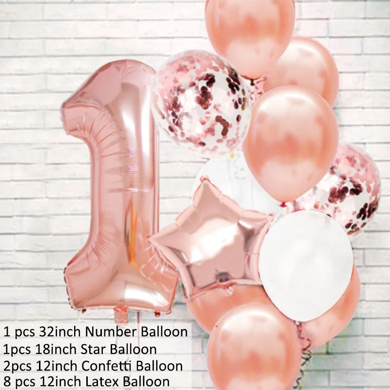 1 шт. 32 дюйма воздушный шар из алюминиевой фольги 1 шт. 18 дюймов воздушный шар из алюминиевой фольги 2 шт. 12 дюймов воздушные шары Конфетти 8 шт. 12 дюймов латексные шары