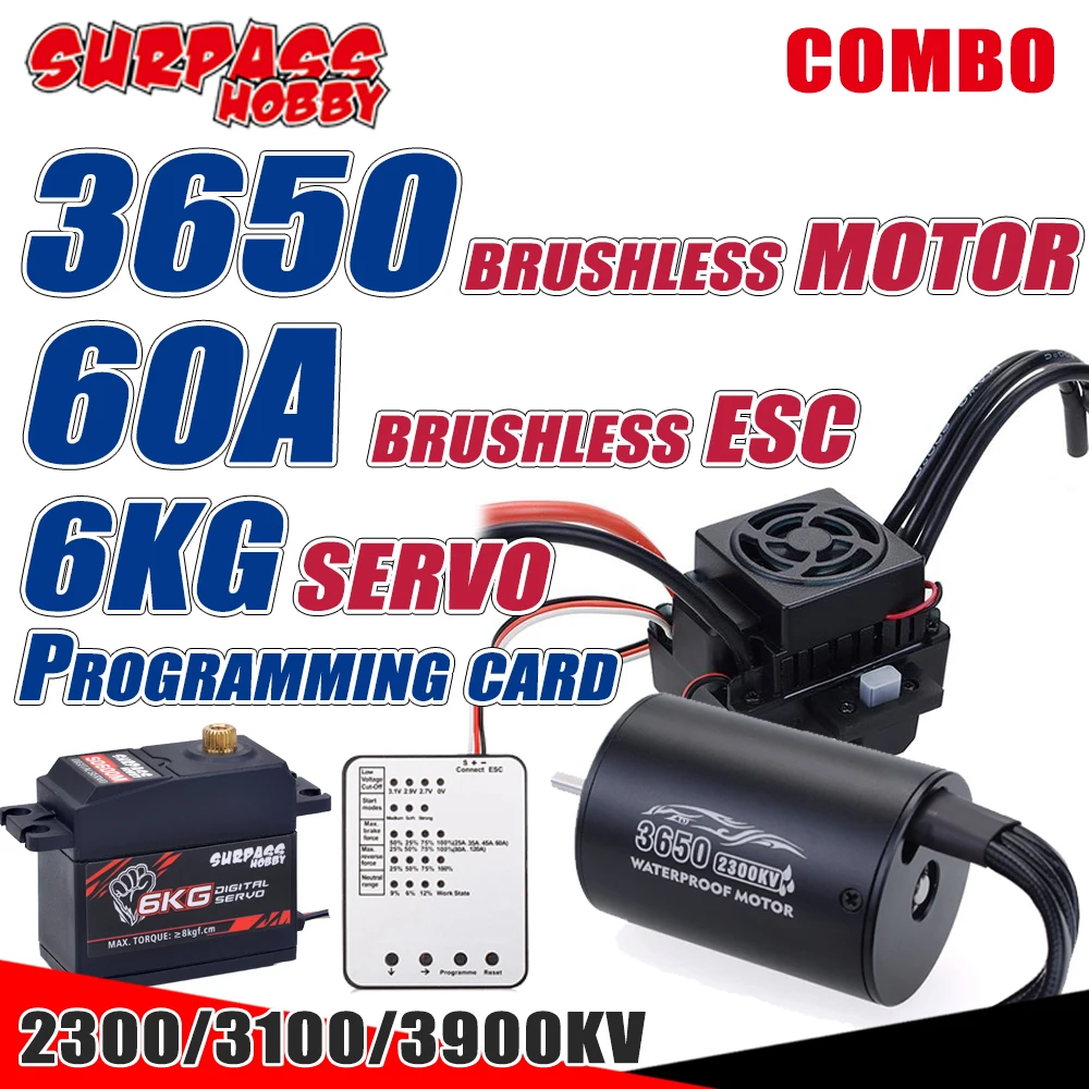 Водонепроницаемый мотор SURPASS HOBBY 3650, 60A, ESC, сервопривод 6 кг, 3100кв, 3900кв, для радиоуправляемого автомобиля Traxxas ARRMA HPI 110