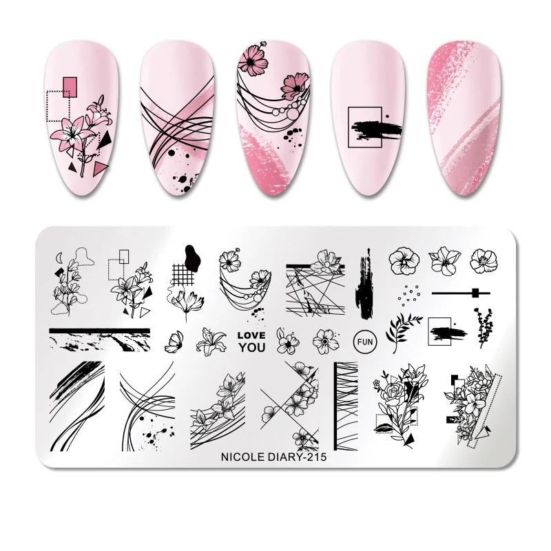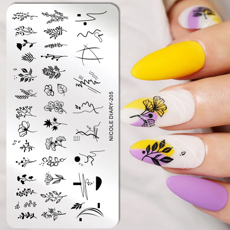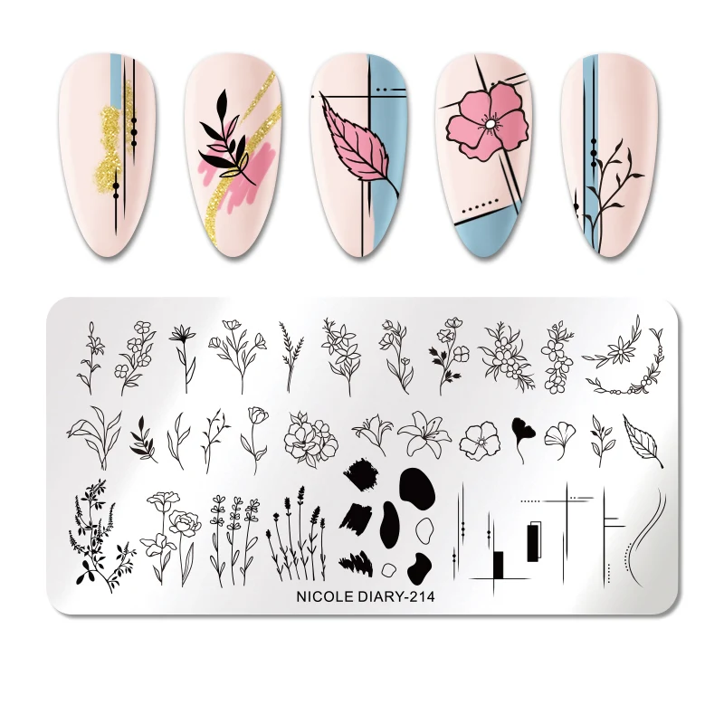 Пластины для стемпинга ногтей с цветами и листьями NICOLE DIARY