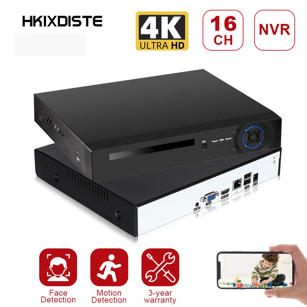 HKIXDIST 4K NVR H.265 HEVC 16CH NVR для 8MP5MP4MP3MP2MP IP-камеры, металлический сетевой видеорегистратор P2P для системы видеонаблюдения
