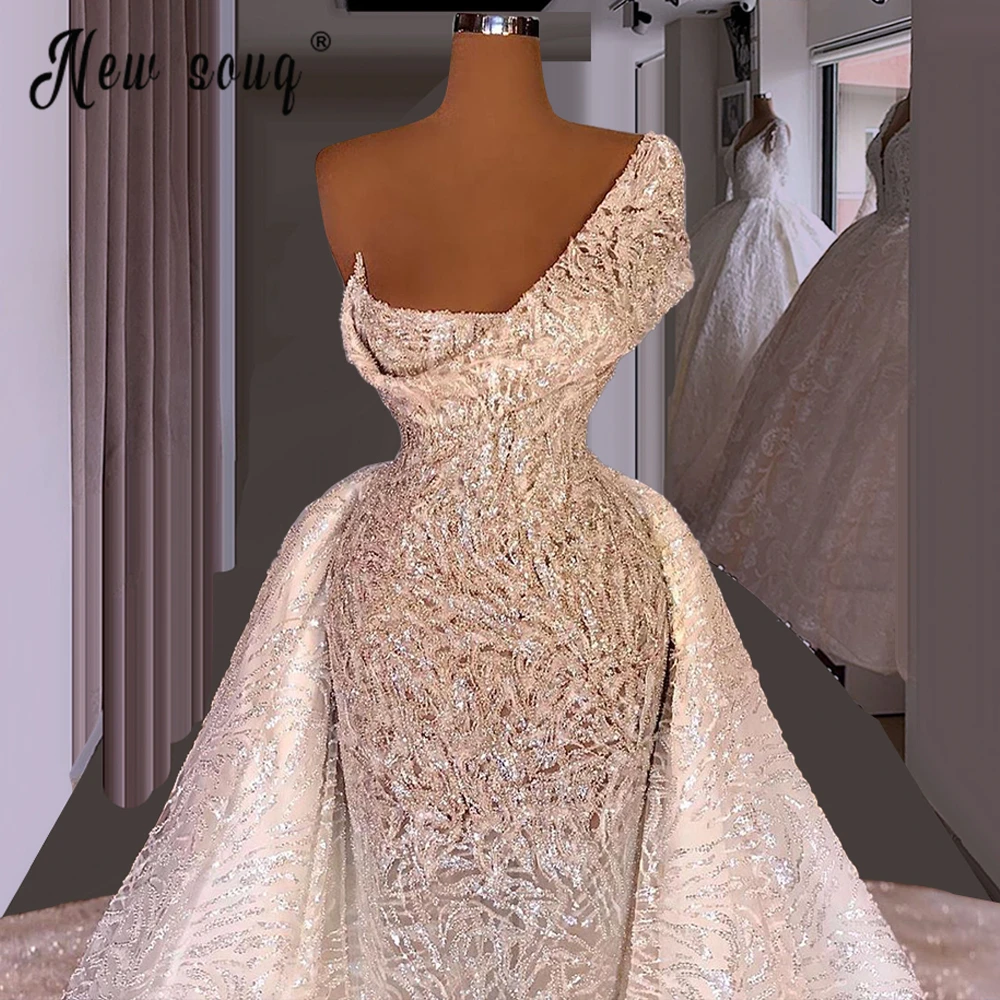 Свадебное платье русалки, белое, с жемчугом, на одно плечо, ручной ...